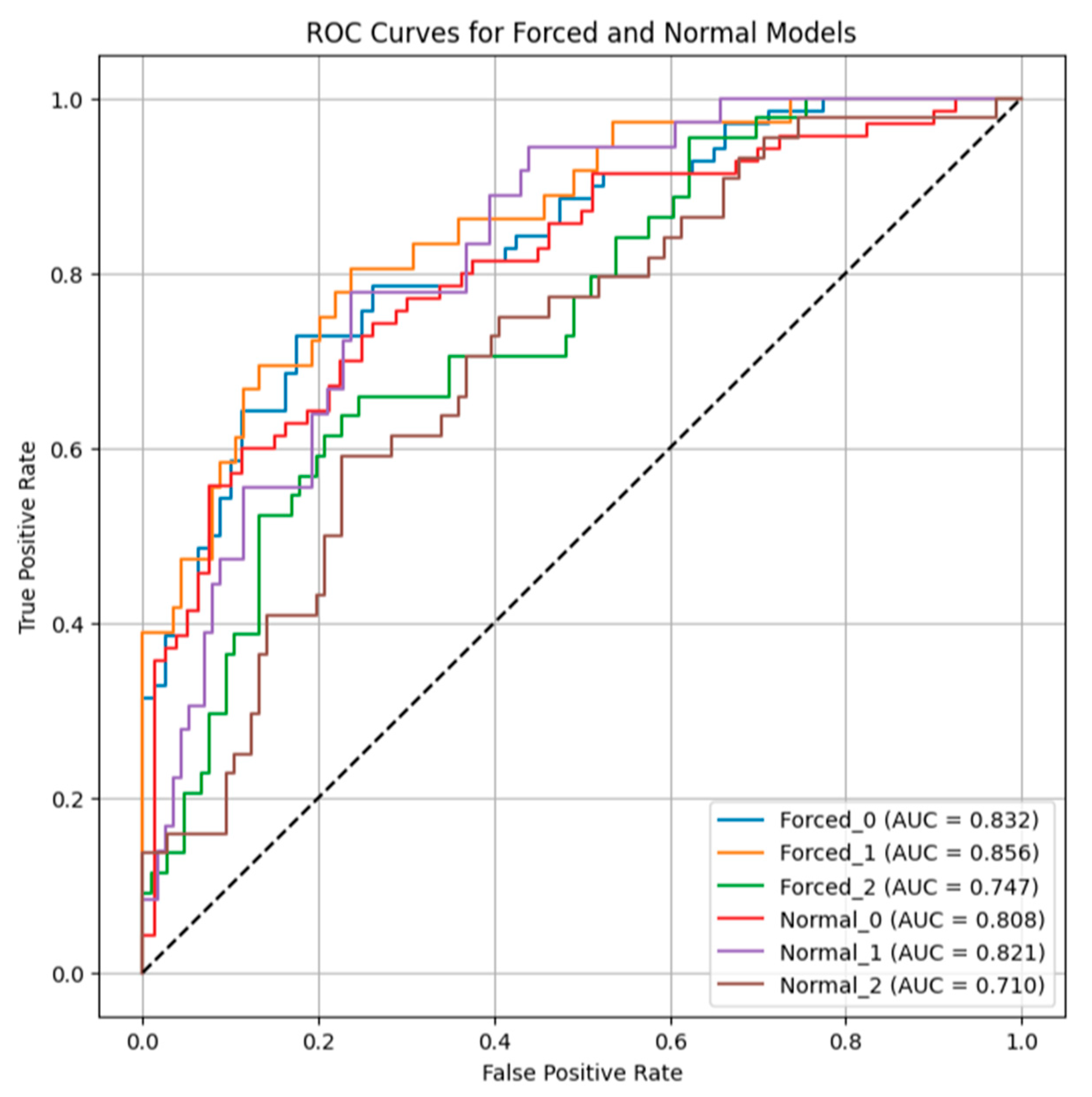 2.3. Characterization of VOC Signatures Associated with Bronchodilator Responsiveness in Normal and Forced Expired Breath Samples