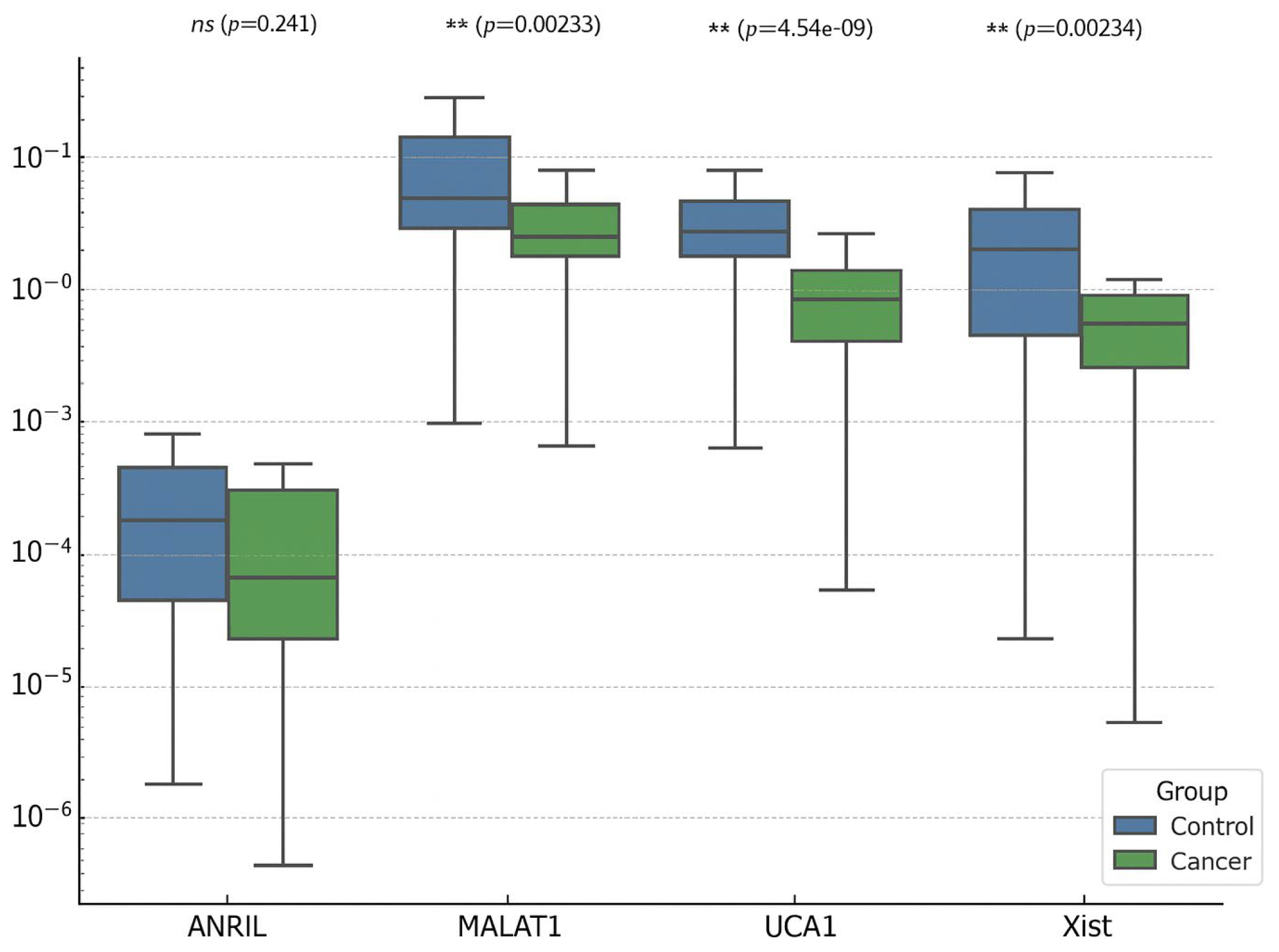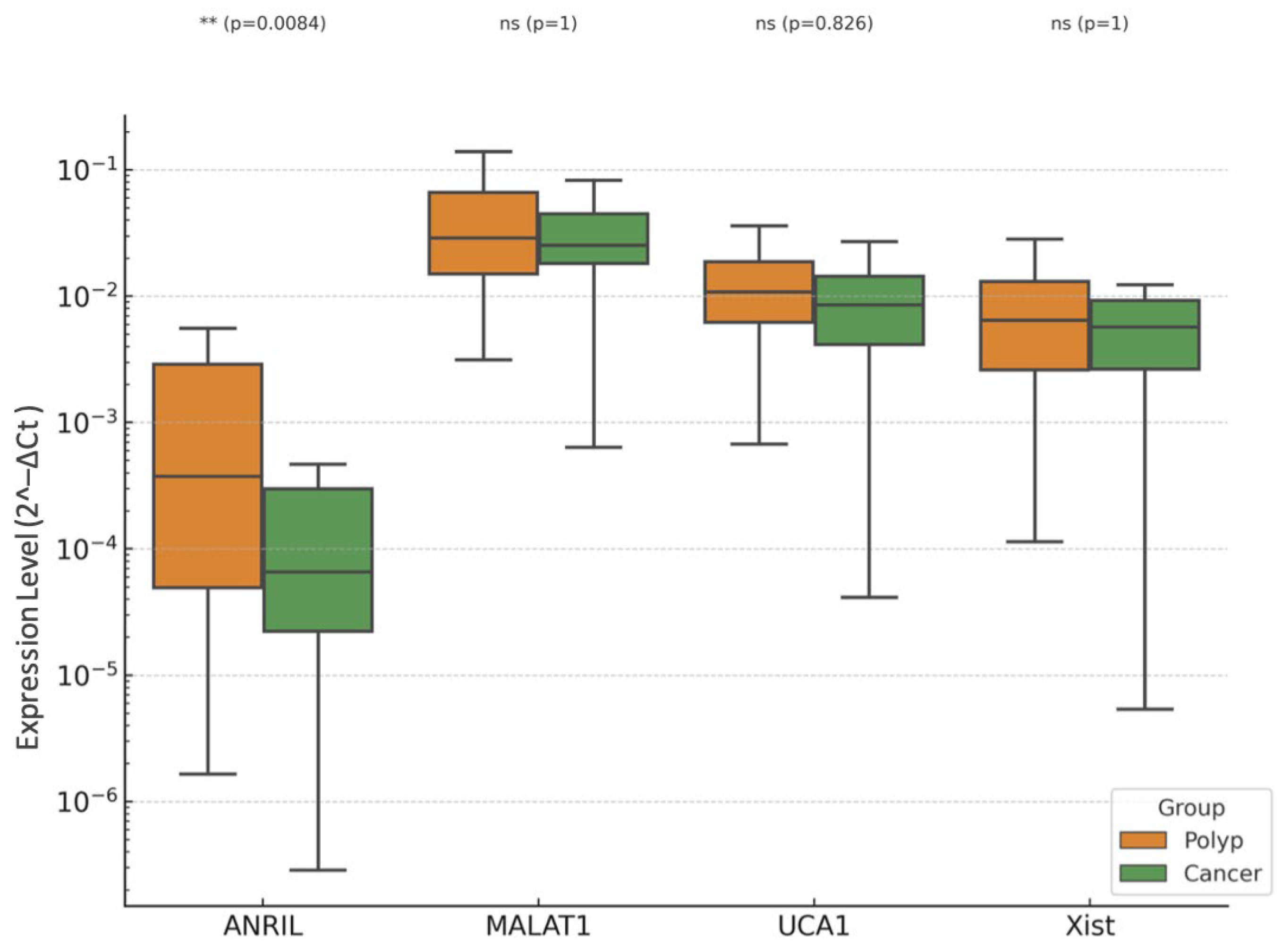 Chicago/Turabian StyleBulbul, Cagla Bahar, Ayla Solmaz Avcikurt, Cagla Kayabasi, Aysegul Dalmizrak, and Zafer Erol. 2025. "Comparison of Long Non-Coding RNA Expressions in Endometrial Polyp and Endometrial Cancer Cases" Diagnostics 15, no. 21: 2741. https://doi.org/10.3390/diagnostics15212741