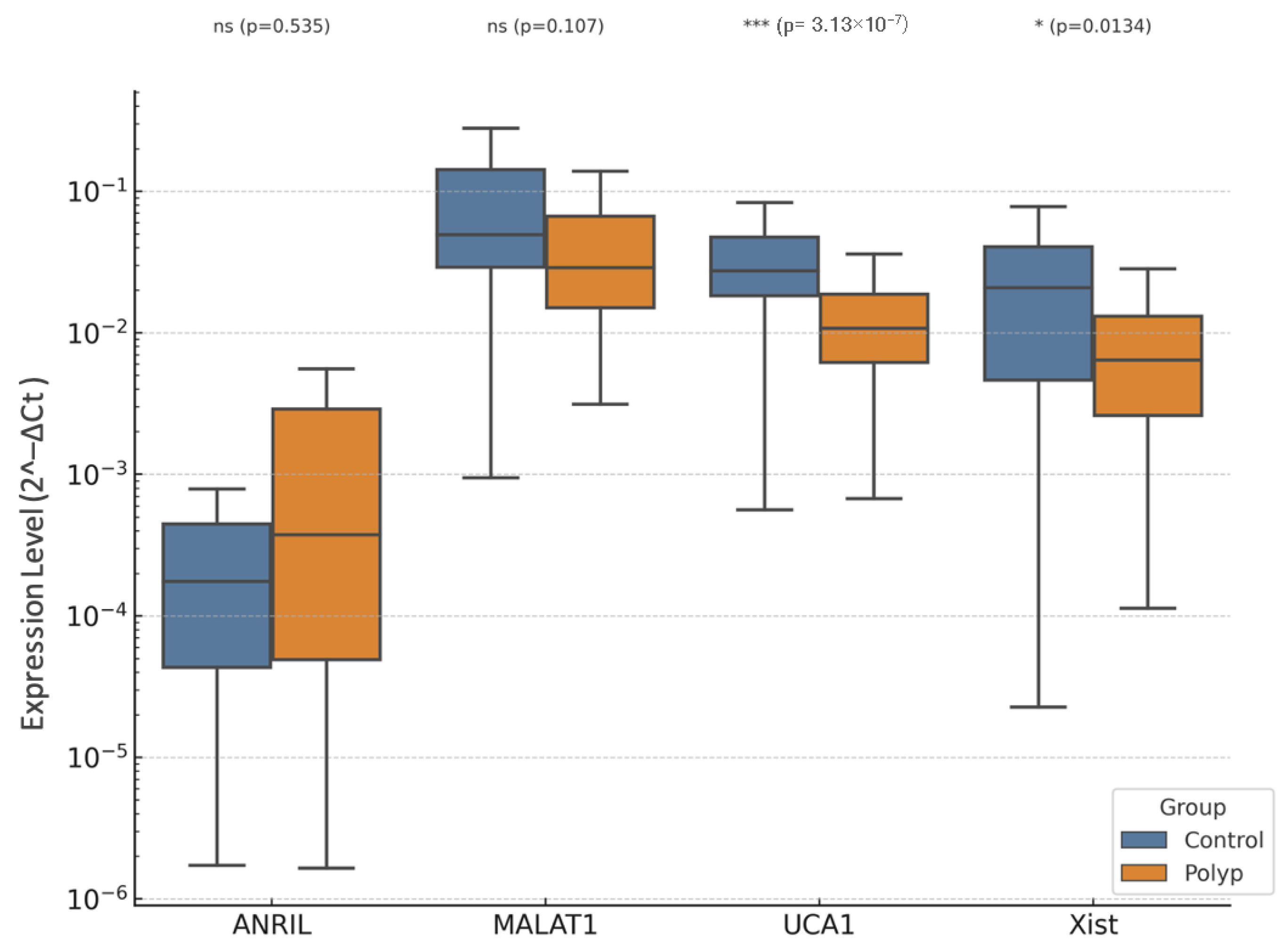 Bulbul CB, Solmaz Avcikurt A, Kayabasi C, Dalmizrak A, Erol Z. Comparison of Long Non-Coding RNA Expressions in Endometrial Polyp and Endometrial Cancer Cases. Diagnostics. 2025; 15(21):2741. https://doi.org/10.3390/diagnostics15212741