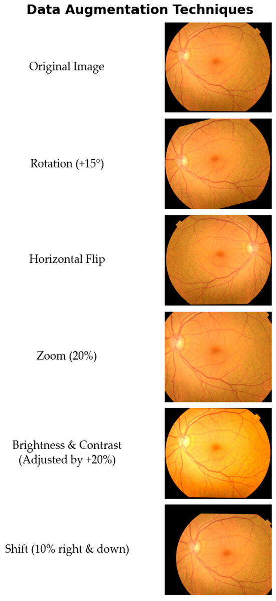 A visual demonstration of these augmentation techniques applied to a sample fundus image is shown in