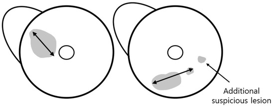 The readers evaluated the presence of additional lesions in the ipsilateral breast and categorized images based on the Breast Imaging Reporting and Data System (BI-RADS) for MRI [10]. We defined an additional suspicious lesion as a lesion located more than 15 mm away from the index tumor, based on the study by van Loevezijin et al. [11], as such lesions were considered unlikely to be included in the wide local excision of the index tumor with a safe surgical margin. Furthermore, a lesion was established as any finding assigned a category of ≥4 by each reader on each MRI protocol. Those lesions were matched between MRI and pathology by two other breast radiologists (S.Y.P. and H.J.K., with 2 and 23 years of experience, respectively) who had not participated in the reading study. Findings included in the biopsy or surgical specimen were classified as benign or malignant based on the pathological results.