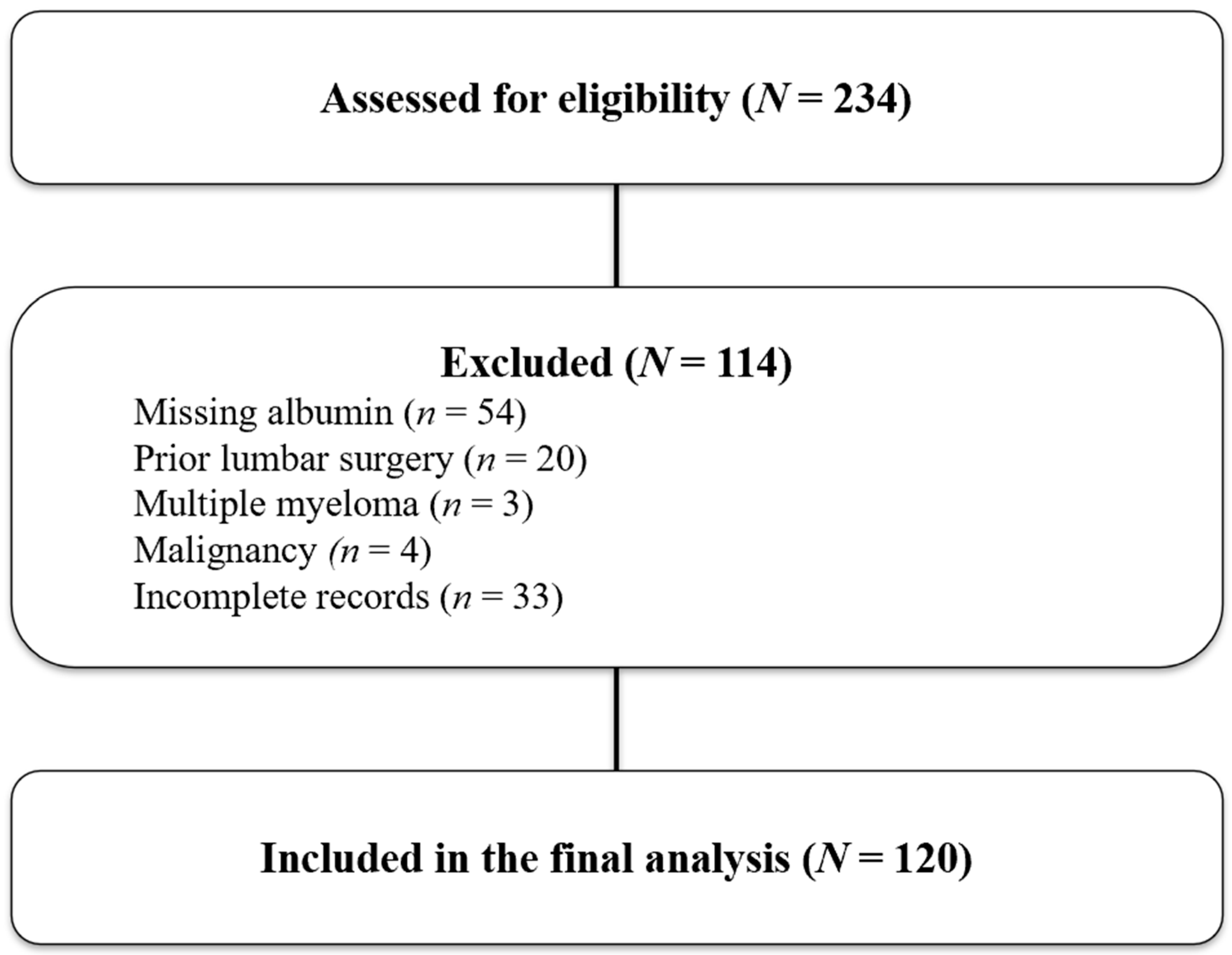 - Osunronbi, T.; Lusta, H.; Borbas, B.; Sofela, A.; Sharma, H. Does Preoperative Neutrophil-Lymphocyte Ratio Predict Patient-Reported Pain and Functional Outcomes at 12 Months After Lumbar Fusion? Int. J. Spine Surg. 2022, 16, 674–680. [Google Scholar] [CrossRef] [PubMed] [PubMed Central]