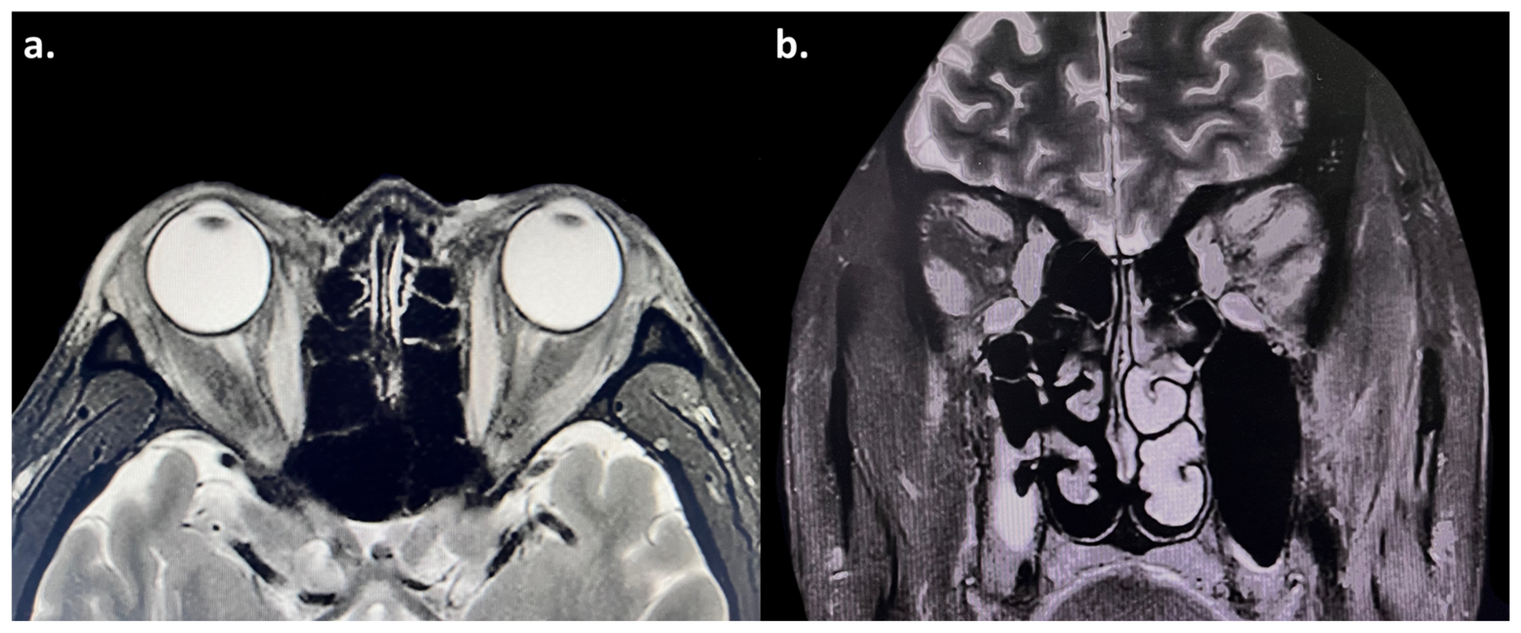 - Sagiv, O.; Kandl, T.J.; Thakar, S.D.; Thuro, B.A.; Busaidy, N.L.; Cabanillas, M.; Jimenez, C.; Dadu, R.; Graham, P.H.; Debnam, J.M.; et al. Extraocular Muscle Enlargement and Thyroid Eye Disease-like Orbital Inflammation Associated with Immune Checkpoint Inhibitor Therapy in Cancer Patients. Ophthalmic Plast. Reconstr. Surg. 2019, 35, 50–52. [Google Scholar] [CrossRef]