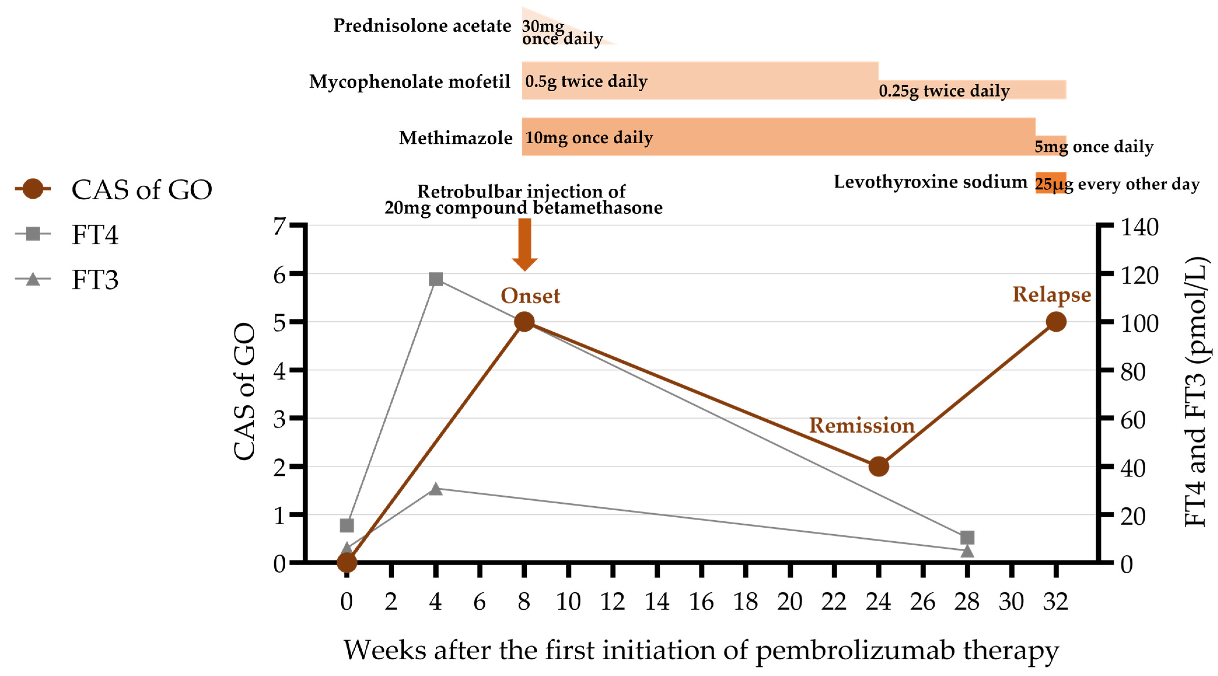 Pan, M.; Zhou, X.; Wu, Y. New-Onset Graves’ Ophthalmopathy After Treatment with Pembrolizumab: A Case Report and a Review of the Literature. Diagnostics 2025, 15, 2764. https://doi.org/10.3390/diagnostics15212764