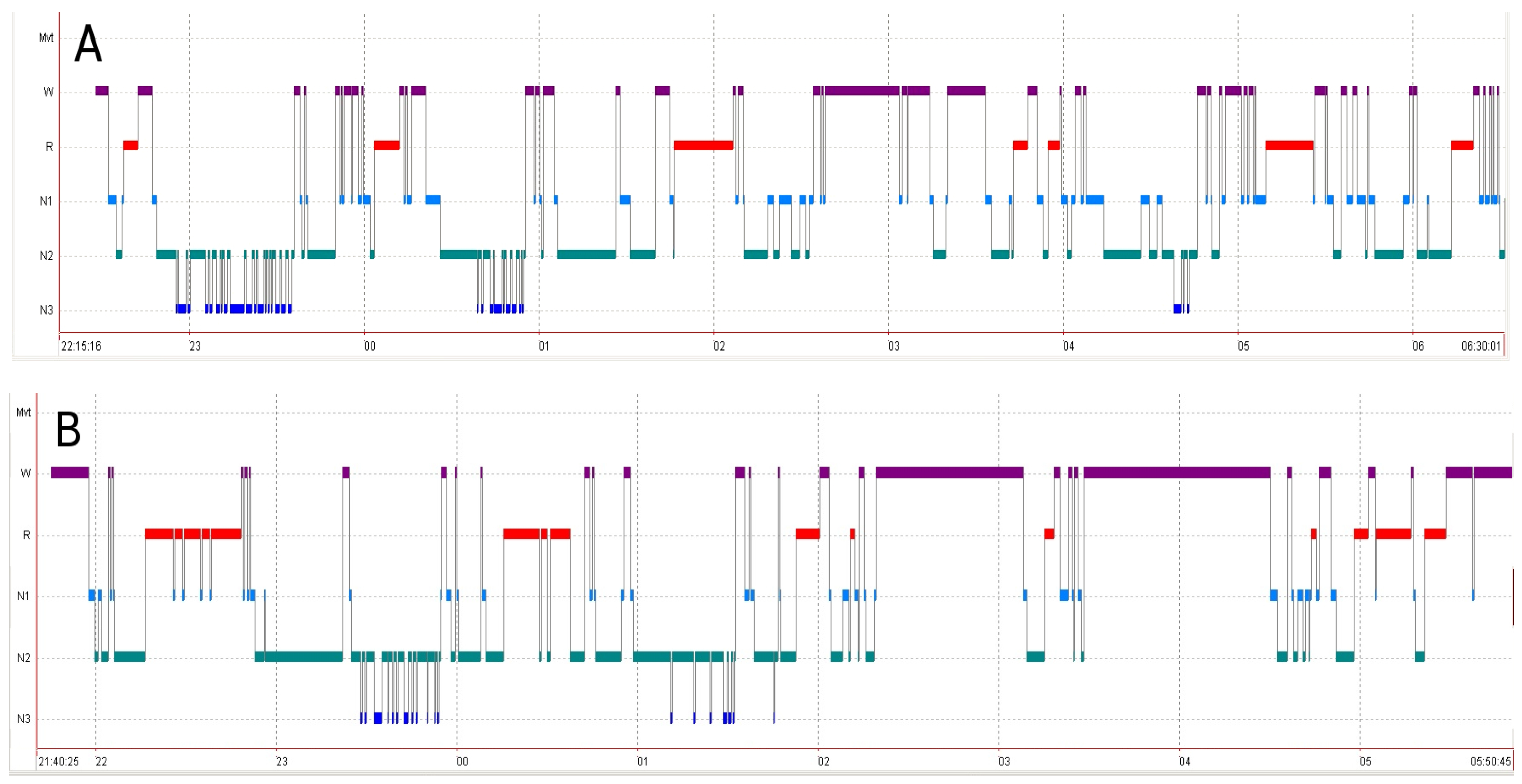 - Cairns, A.; Bogan, R. Prevalence and Clinical Correlates of a Short Onset REM Period (SOREMP) during Routine PSG. Sleep 2015, 38, 1575–1581. [Google Scholar] [CrossRef][Green Version]