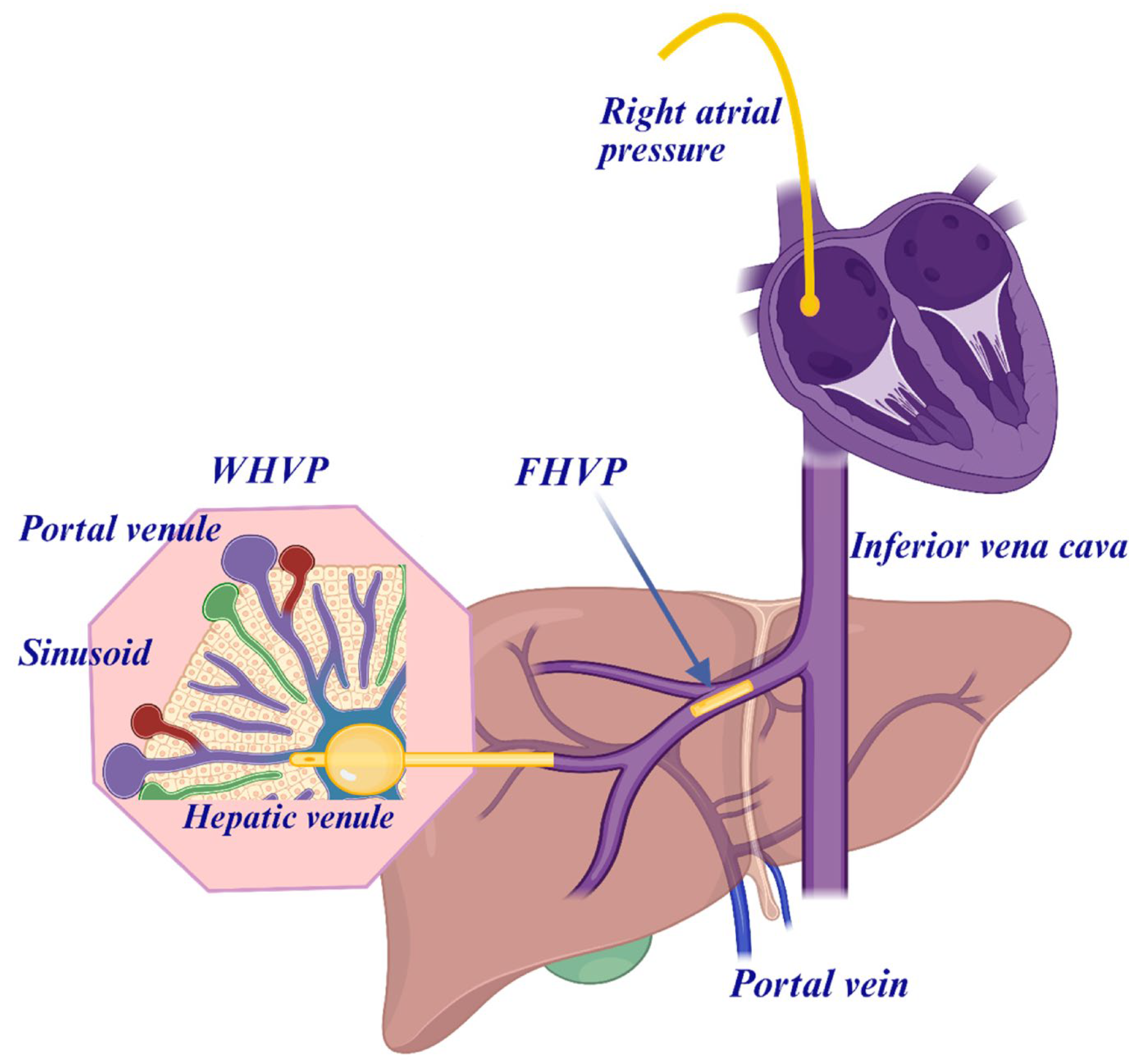 9]. PH can be accurately diagnosed by measuring the difference between the pressure between the portal vein and that of the inferior caval vein, which represents the hepatic perfusion pressure. For practical purposes, HVPG is measured as the pressure difference between the wedged hepatic (WHVP) and free hepatic venous pressures (FHVPs). The level of CSPH independently predicts the development of hepatic decompensation, liver-related complications, hepatocellular carcinoma (HCC), and mortality [