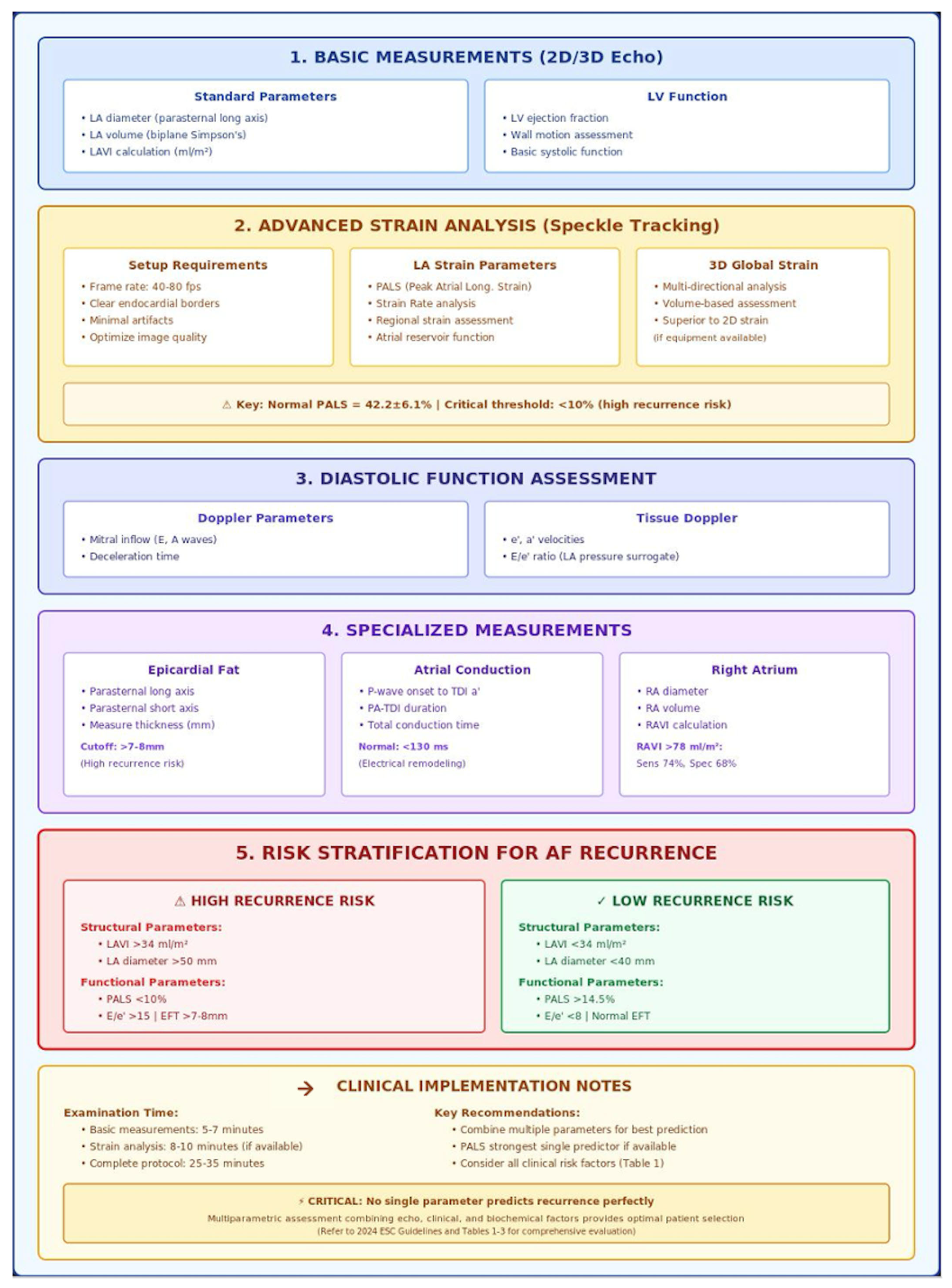 - Bajraktari, G.; Bytyçi, I.; Henein, M.Y. Left atrial structure and function predictors of recurrent fibrillation after catheter ablation: A systematic review and meta-analysis. Clin. Physiol. Funct. Imaging 2020, 40, 1–13. [Google Scholar] [CrossRef] [PubMed]