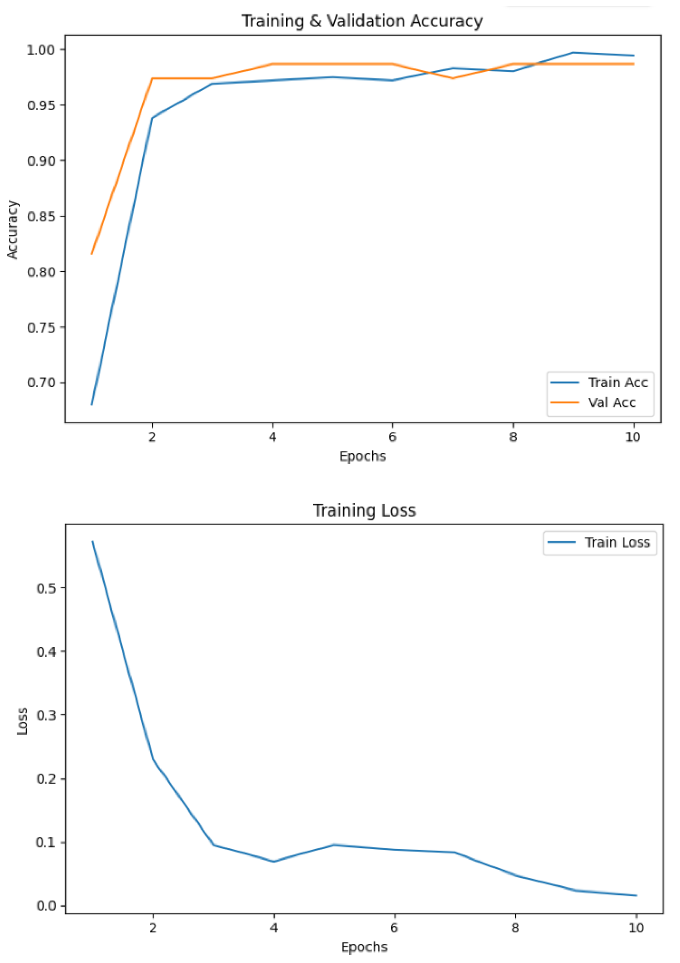 Figure 10. While these results indicate that the CNN captured relevant handwriting features for Parkinson’s detection, its performance was substantially lower compared to the proposed EfficientNetV2-S framework. These findings highlight the advantage of deeper architectures with transfer learning and enhanced preprocessing in capturing subtle neuromotor irregularities.