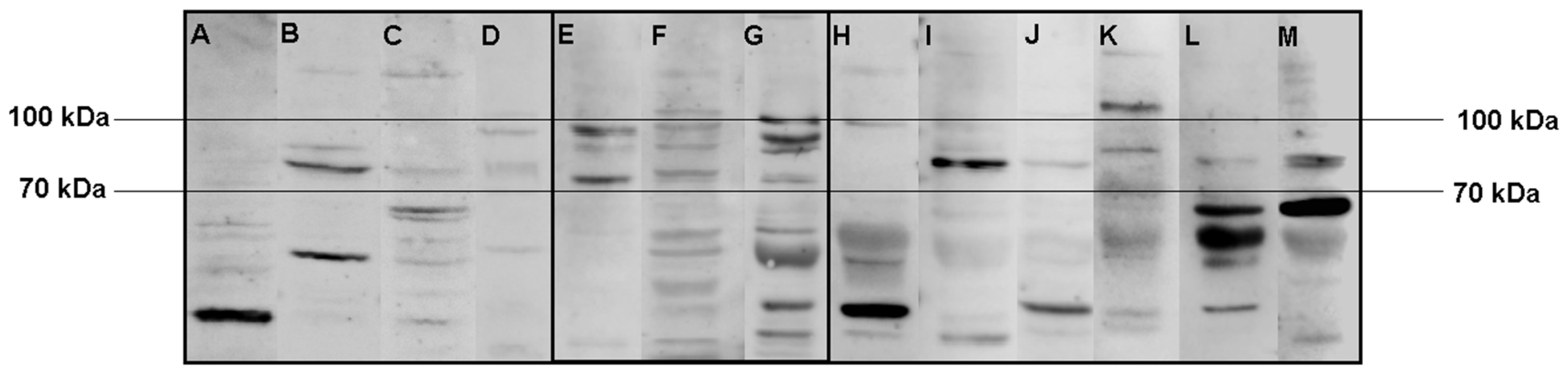 APA StyleSevilla Avendaño, J. M., Garrido, C., Rodríguez Clemente, I., Solís-García del Pozo, J., Stephani, U., Martínez, R., de Cabo, C., Ceña, V., & Solera, J. (2025). Preliminary Evidence for a Western Blot Diagnosis of Satoyoshi Syndrome Using SH-SY5Y Neuroblastoma Cell Lysate as the Antigen Source. Diagnostics, 15(21), 2797. https://doi.org/10.3390/diagnostics15212797