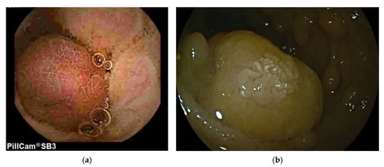 - Zagorowicz, E.S. Small Bowel Tumors Detected and Missed during Capsule Endoscopy: Single Center Experience. World J. Gastroenterol. 2013, 19, 9043. [Google Scholar] [CrossRef]
