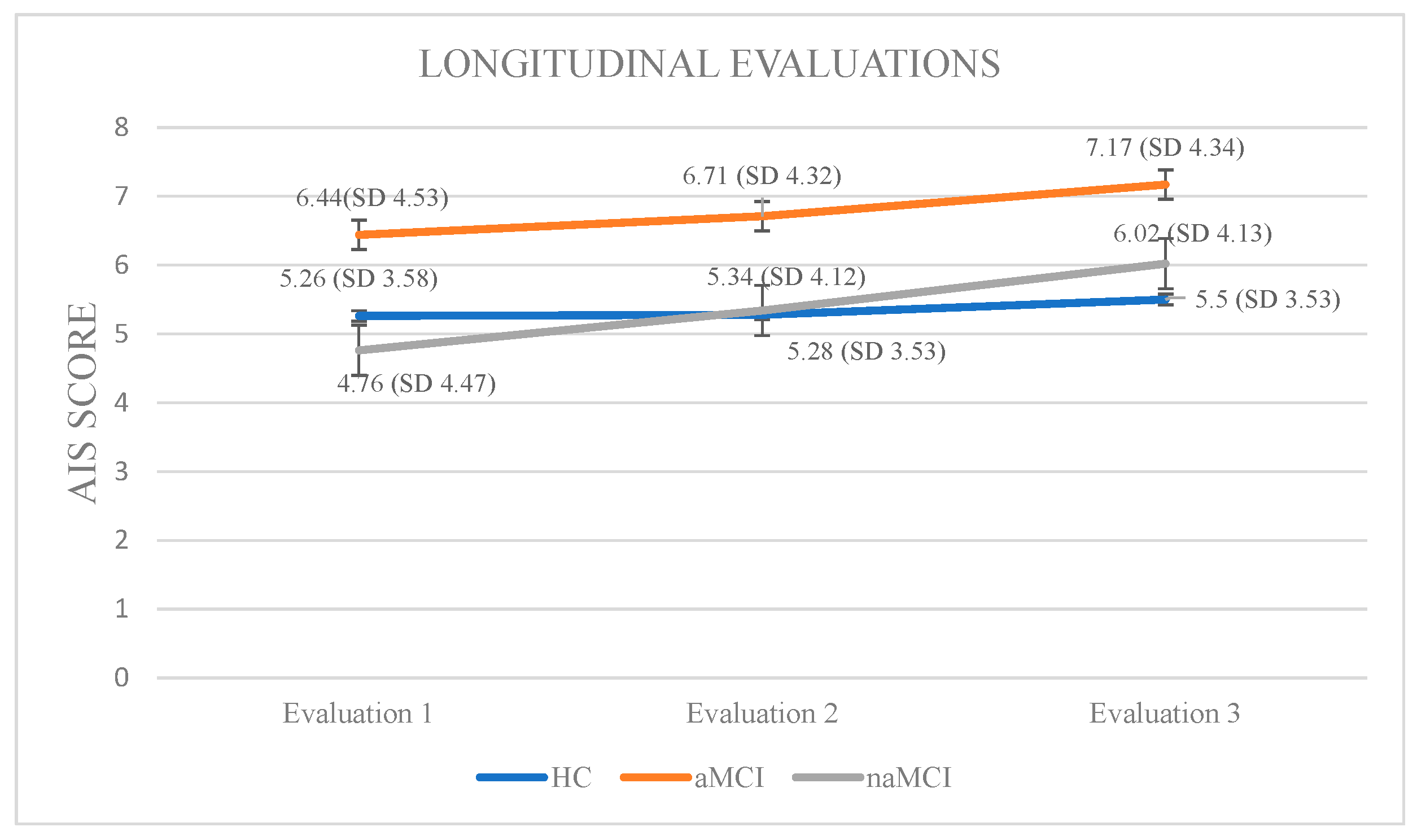 - Sleep quality was expected to decline over time, most markedly in naMCI, then aMCI; healthy controls will remain relatively stable or show only minimal age-related changes.