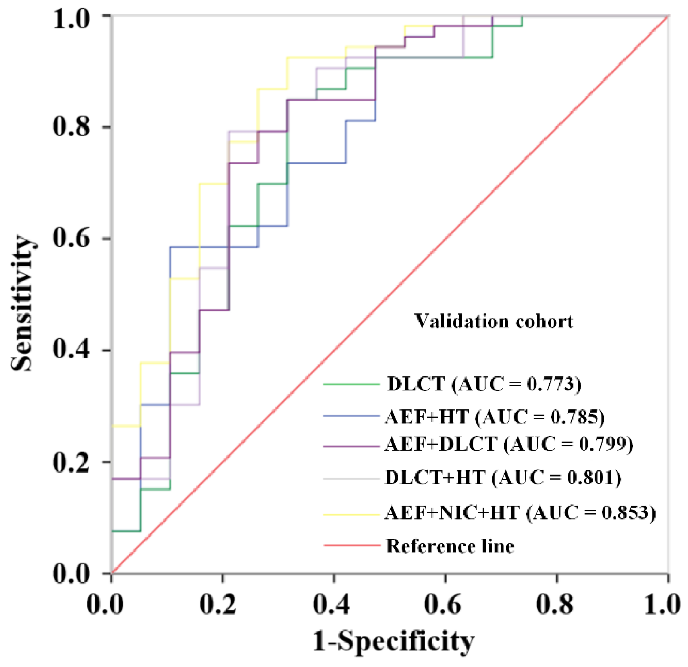 | AEF + NIC + HT | 0.896 (0.833–0.959) | 0.903 | 0.742 | 0.853 (0.746–0.961) | 0.925 | 0.684 |