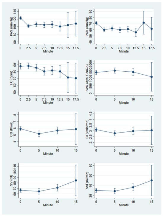 The following supporting information can be downloaded at: https://www.mdpi.com/article/10.3390/diagnostics15222846/s1, Table S1: Variation of Cardiac Output over time and Interaction with anthropometric characteristics and hemodynamic parameters; Table S2: Variation of Cardiac Index over time and Interaction with anthropometric characteristics and hemodynamic parameters; Table S3: Variation of Stroke Volume over time and Interaction with anthropometric characteristics and hemodynamic parameters; Table S4: Variation of Stroke Volume Index over time and Interaction with anthropometric characteristics and hemodynamic parameters; Table S5: Variation of Systemic Vasculare Resistance over time and Interaction with anthropometric characteristics and hemodynamic parameters; Table S6: Comparison of hemodynamic parameters before and after administration of Ephedrine (n = 28); Table S7: Comparison of hemodynamic parameters before and after administration of Phenylephrine with or without Ephedrine (n = 10).