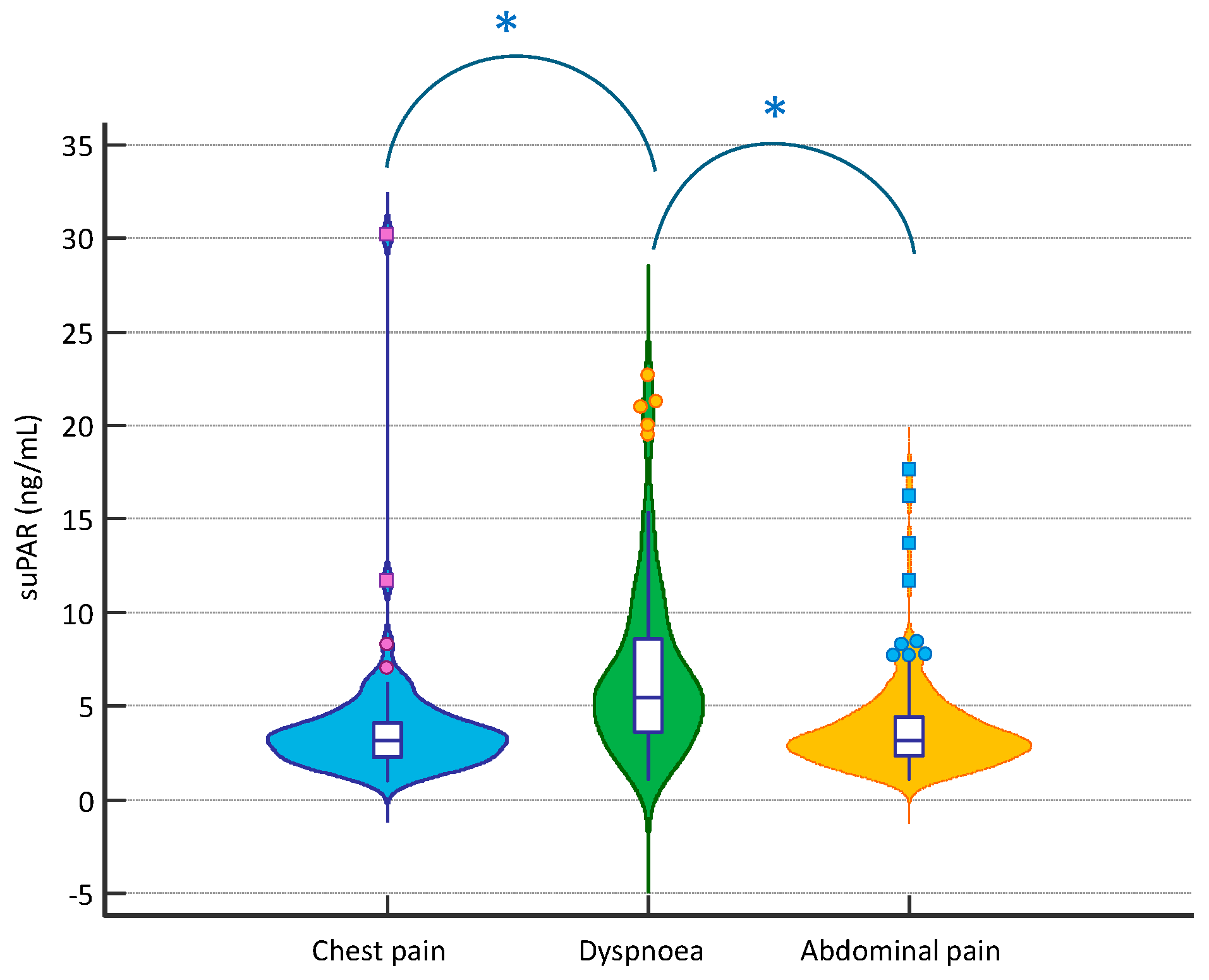 Chicago/Turabian StyleGavelli, Francesco, Francesca Maria Giolitti, Matteo Vidali, Marta Montersino, Matteo Bertoli, Luca Molinari, Marco Baldrighi, Michela Beltrame, Pier Paolo Sainaghi, Mattia Bellan, and et al. 2025. "Soluble Urokinase Plasminogen Activator Receptor (suPAR) Predicts 28-Day and 90-Day Mortality in Emergency Department Patients with Chest Pain, Dyspnoea, or Abdominal Pain" Diagnostics 15, no. 22: 2851. https://doi.org/10.3390/diagnostics15222851