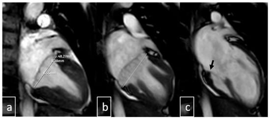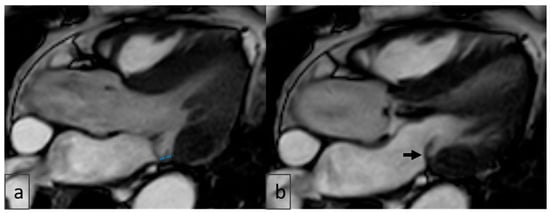 Accurate diagnosis of MAD requires meticulous attention to potential imaging artifacts, particularly pseudo-MAD—a systolic-only apparent separation of ≥1 mm between the left atrial wall–mitral valve junction and the basal left ventricular myocardium. True MAD, by contrast, is characterized by persistent atrial displacement of the annular hinge throughout both systole and diastole, with maximal excursion typically observed at end-systole [,]. In our study, careful cine-phase analysis was performed to avoid misclassification, and systolic-only separations not visible in diastole were excluded from the MAD group.