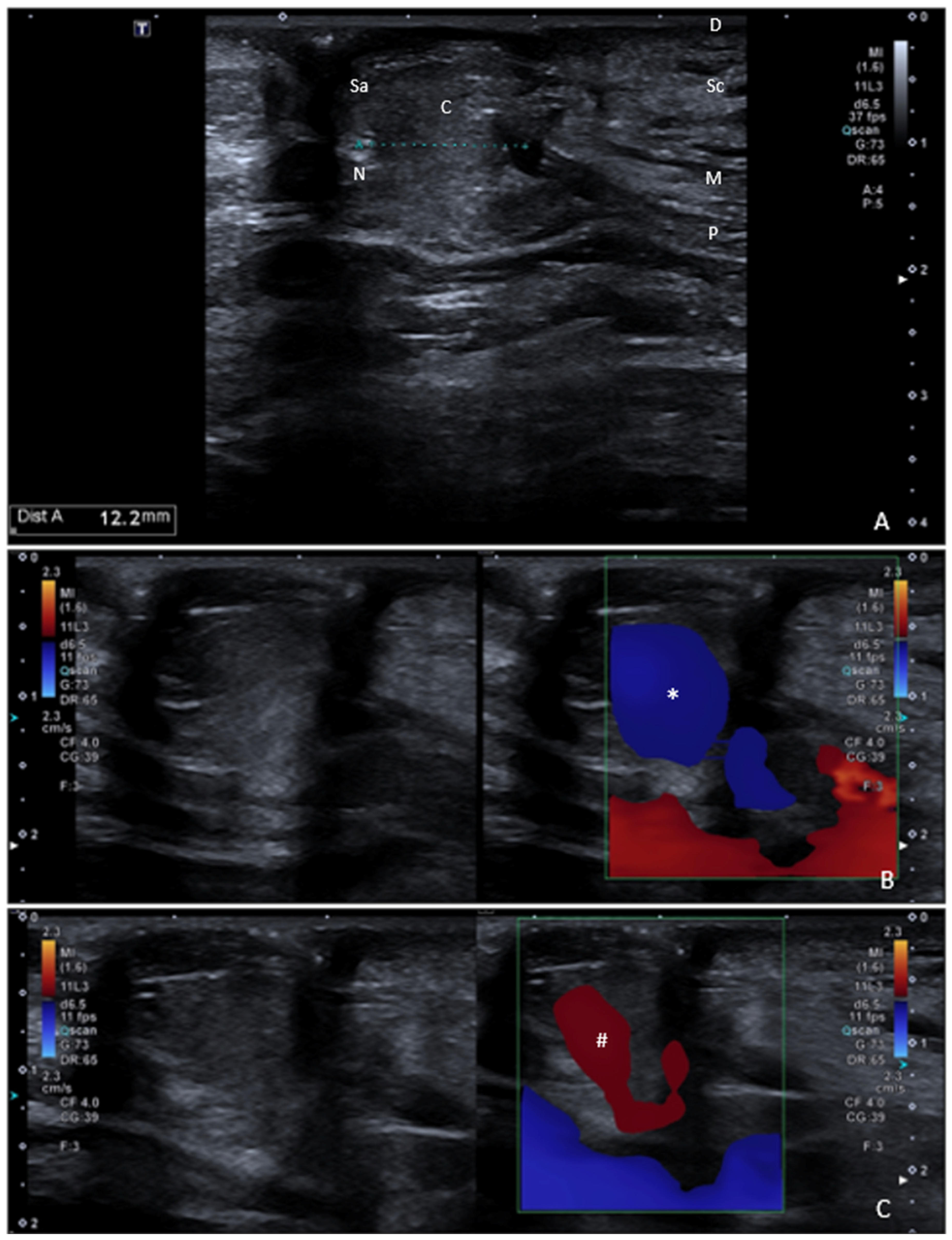 - Goffi, A.; Al-Amoodi, A.; Buchanan, B. Principles of Doppler Ultrasonography and Basic Applications for the Clinician. Med. Clin. N. Am. 2025, 109, 217–236. [Google Scholar] [CrossRef] [PubMed]