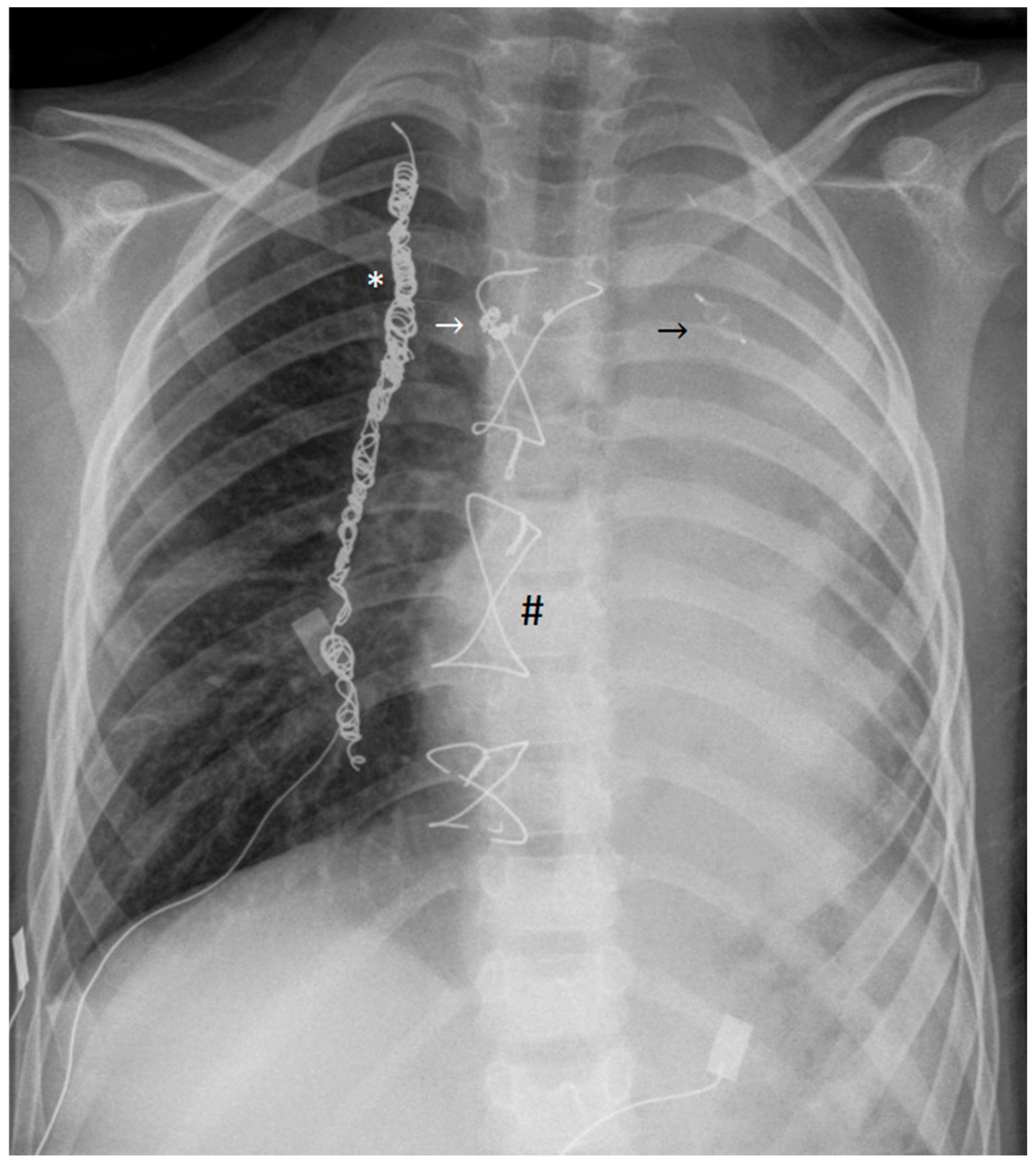 - Chaudhari, M.; Stumper, O. Plastic bronchitis after Fontan operation: Treatment with stent fenestration of the Fontan circuit. Heart 2004, 90, 801. [Google Scholar] [CrossRef] [PubMed] [PubMed Central]