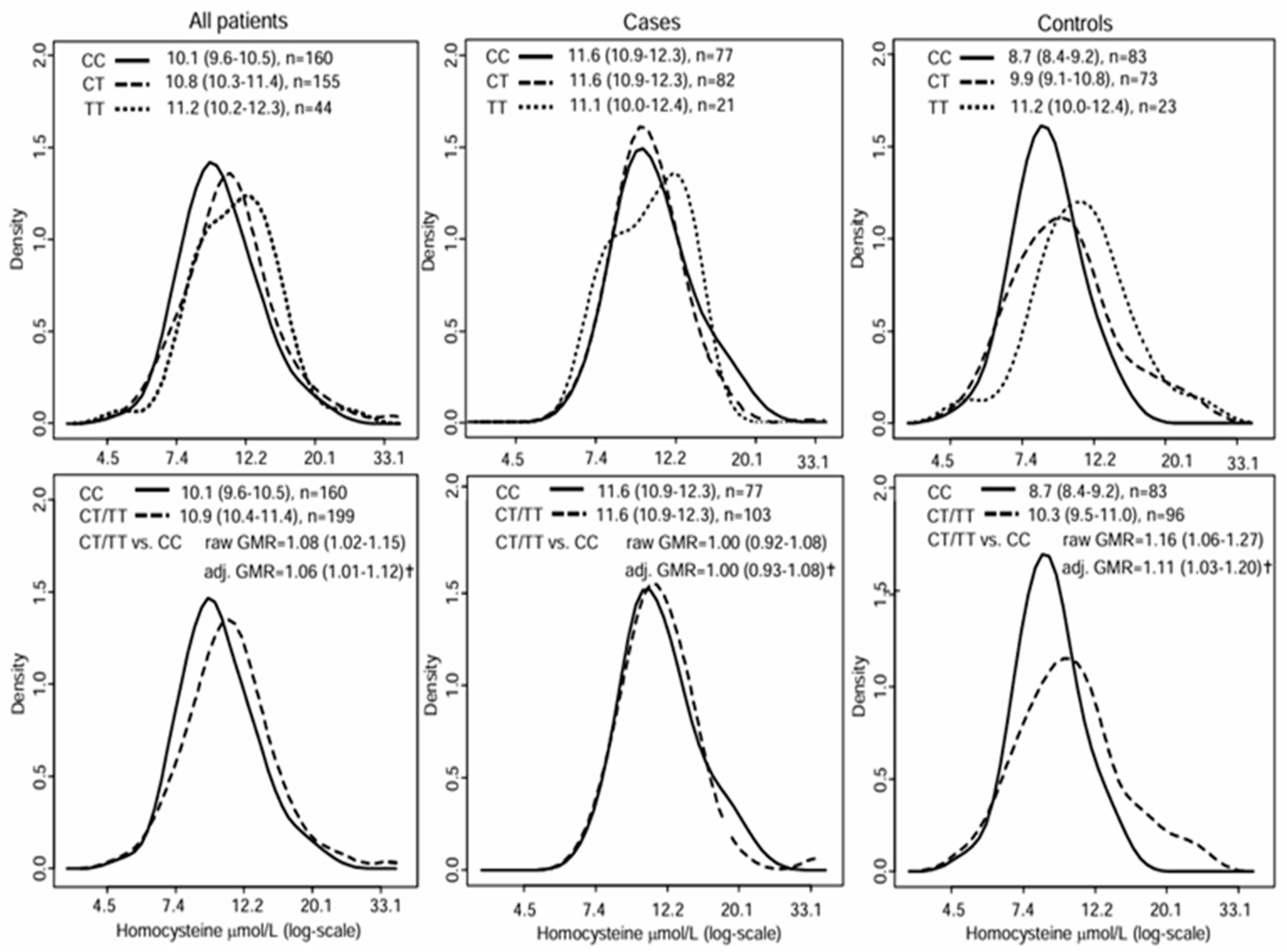 3.3. Effect of MTHFR 677C>T on Plasma tHcy