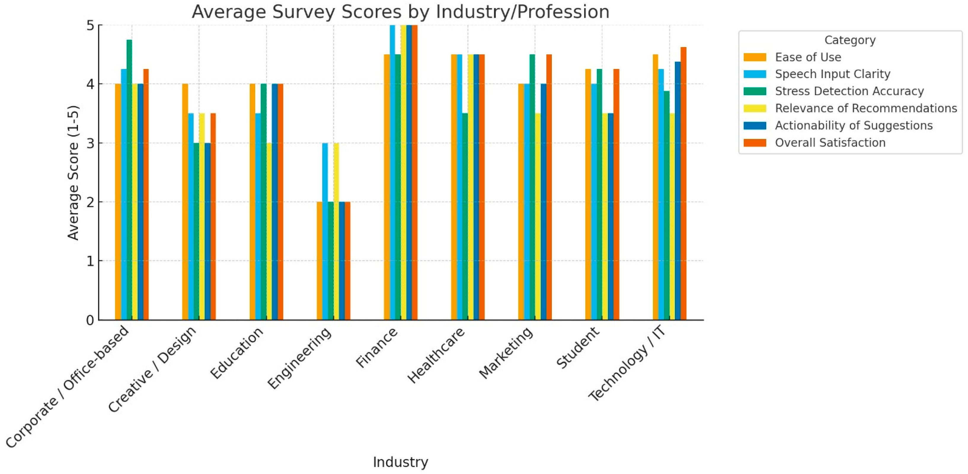 In addition to detection, the system provides tailored, actionable recommendations based on the identified stress level [20]. For instance, users classified with moderate stress may be encouraged to engage in breathing exercises, take mindful breaks, or listen to calming music, whereas severe cases may be guided toward more structured interventions. These personalized suggestions are designed to be practical, easily implementable, and context-aware, aiming to reduce stress in real time [21].