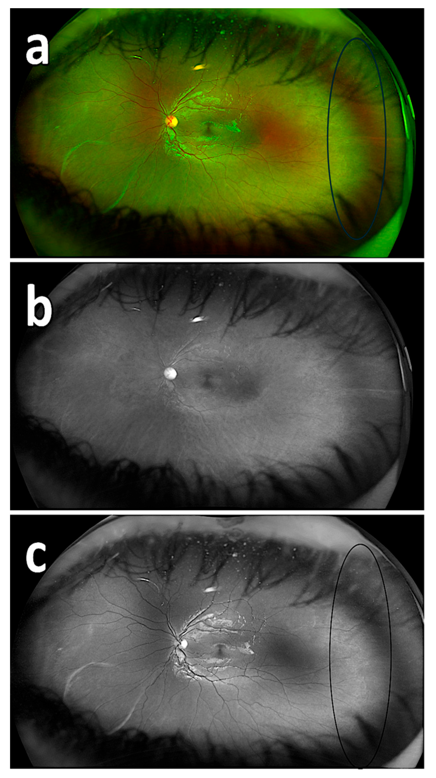 37. Cheung, R.; Ly, A.; Katalinic, P.; Coroneo, M.T.; Chang, A.; Kalloniatis, M.; Madigan, M.C.; Nivison-Smith, L. Visualisation of peripheral retinal degenerations and anomalies with ocular imaging. Semin. Ophthalmol. 2022, 37, 554–582. [Google Scholar] [CrossRef]