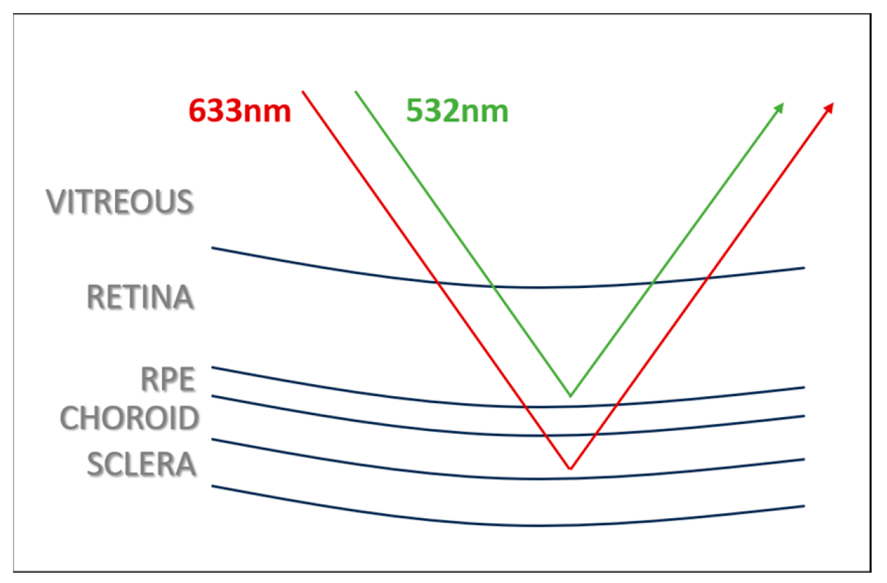 Figure 5. Green and red light penetrance by the laser wavelength.