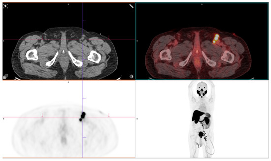 - Young, S.; Liu, W.; Zukotynski, K.; Bauman, G. Prostate-specific membrane antigen targeted PET/CT for recurrent prostate cancer: A clinician’s guide. Expert Rev. Anticancer Ther. 2021, 21, 641–655. [Google Scholar] [CrossRef]