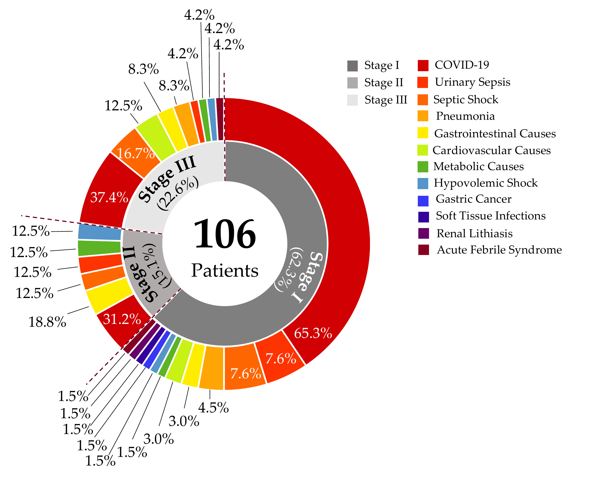 - These findings should be interpreted considering that 53.8% of the patients were admitted with a diagnosis of COVID-19, while the remaining cases were associated with other causes of AKI, such as sepsis and gastrointestinal disorders. Therefore, the results reflect a mixed population of COVID-19 and non-COVID-19 patients.