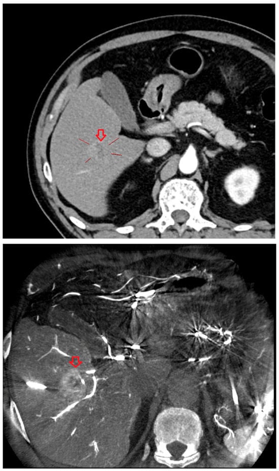 - Van Tilborg, A.A.; Scheffer, H.J.; Nielsen, K.; van Waesberghe, J.H.T.; Comans, E.F.; van Kuijk, C.; Tol, P.M.v.D.; Meijerink, M.R. Transcatheter CT arterial portography and CT hepatic arteriography for liver tumor visualization during percutaneous ablation. J. Vasc. Interv. Radiol. 2014, 25, 1101–1111. [Google Scholar] [CrossRef] [PubMed]