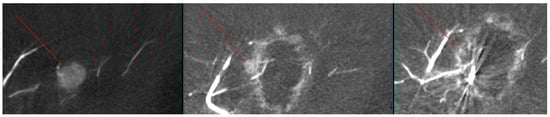 - Sutter, O.; Fihri, A.; Ourabia-Belkacem, R.; Sellier, N.; Diallo, A.; Seror, O. Real-Time 3D Virtual Target Fluoroscopic Display for Challenging Hepatocellular Carcinoma Ablations Using Cone Beam CT. Technol. Cancer Res. Treat. 2018, 17, 1533033818789634. [Google Scholar] [CrossRef] [PubMed]