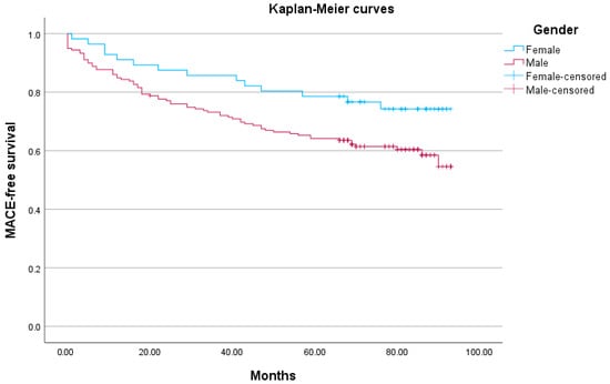 In previous studies of unselected patients with acute myocardial infarction (AMI), women have consistently had a higher overall mortality rate, been of older age, and have been less likely to receive early invasive management and secondary prophylactic treatment compared to men [,,]. However, the use of total mortality as an endpoint in the context of the modern treatment of AMI may be questionable, as cardiovascular deaths account for only approximately 50% of long-term fatalities [,,]. Therefore, further investigation is needed to ascertain whether gender differences predict outcomes in a consecutive series of patients treated with early percutaneous coronary intervention (PCI) alongside aggressive lifestyle measures and medical therapies [,,].