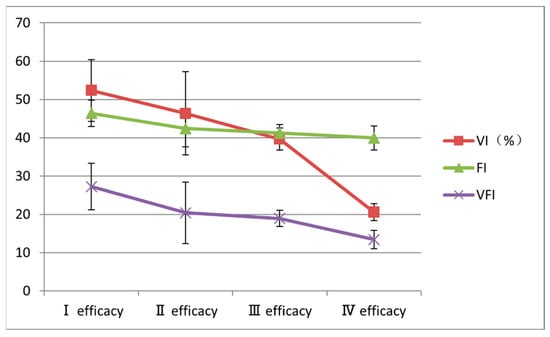 Following multivariate logistic regression analysis of variables determined using forward selection, only the VFI (odds ratio = 0.818, 95% confidence interval: 0.705–0.948, p = 0.008) remained an independent predictor of treatment efficacy.