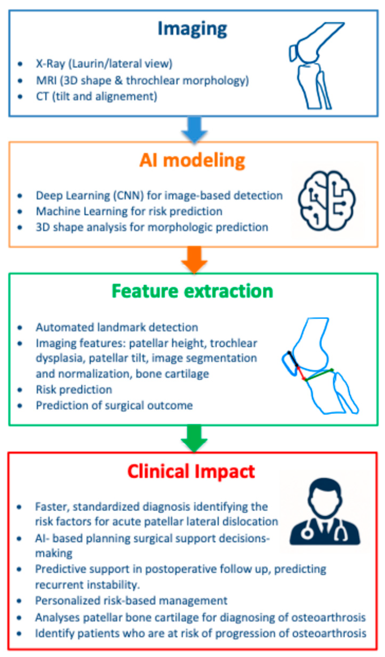 Mercurio M, Denami F, Vescio A, Familiari F, Longo UG, Galasso O, Gasparini G on behalf of the Italian Orthopaedic Research Society (IORS), Dejour DH. Artificial Intelligence for the Diagnosis and Management of Patellofemoral Instability: A Comprehensive Review. Diagnostics. 2025; 15(22):2918. https://doi.org/10.3390/diagnostics15222918