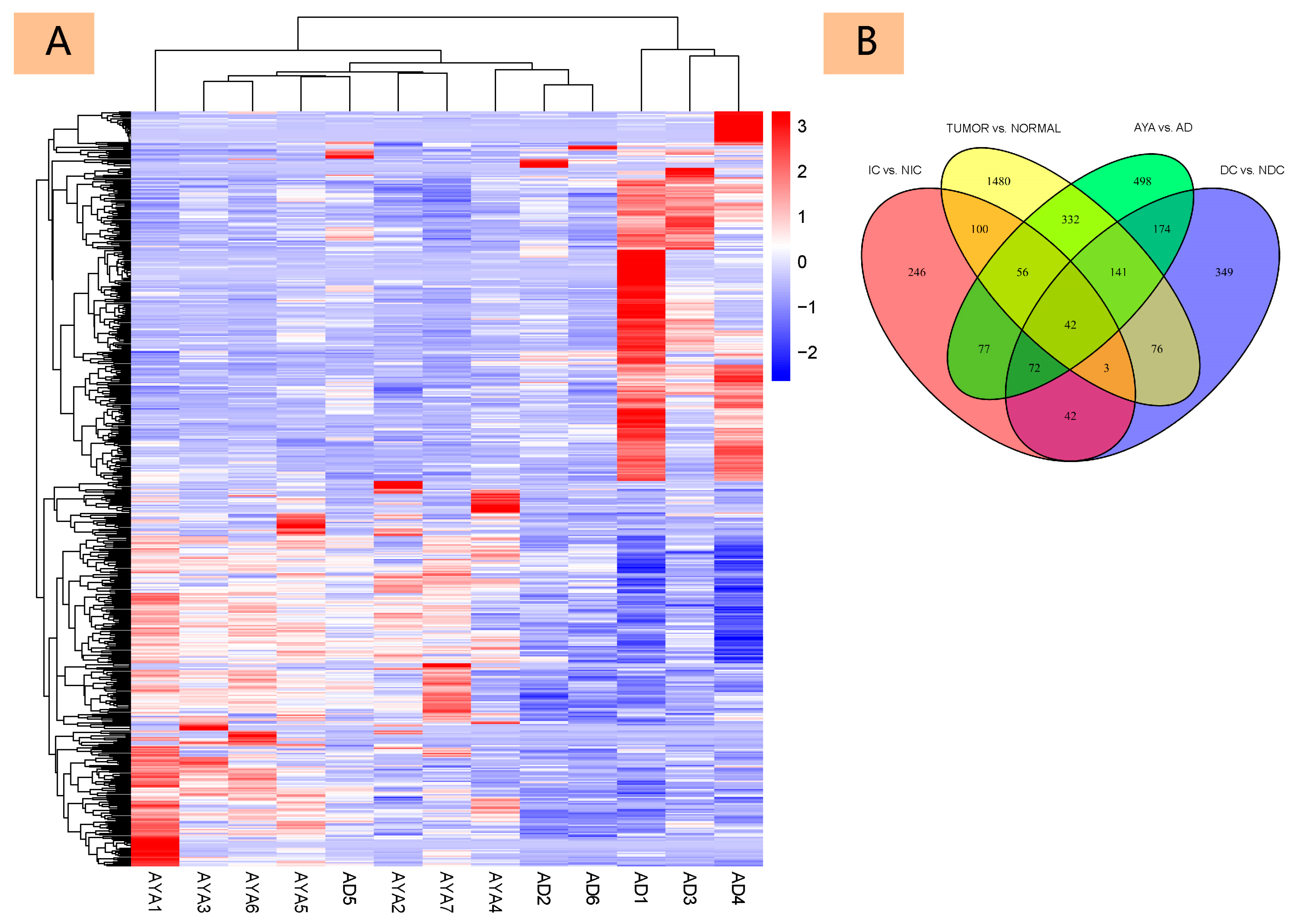 - Wang, X.; Langevin, A.M.; Houghton, P.J.; Zheng, S. Genomic disparities between cancers in adolescent and young adults and in older adults. Nat. Commun. 2022, 13, 7223. [Google Scholar] [CrossRef] [PubMed]