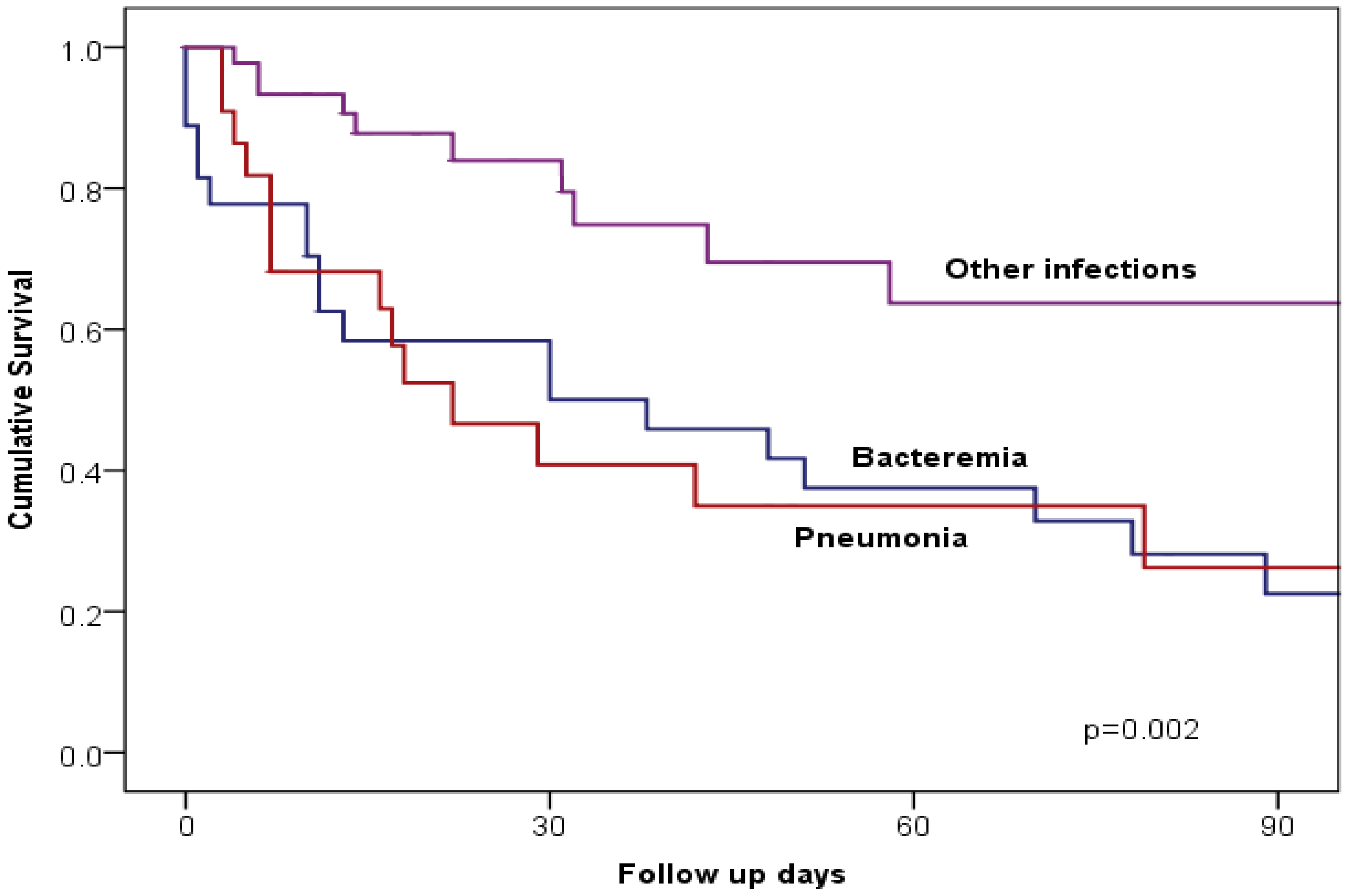 | Bacteremia | 28 (33.3%) | 5 (29.4%) | 0.753 | 9 (15.5%) | 24 (55.8%) | <0.001 * |