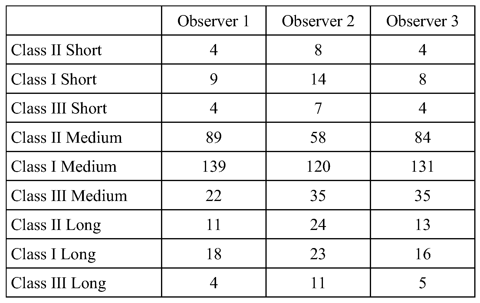 | Class II Short | 1.00 | 0.75 | 0.86 | 4 |