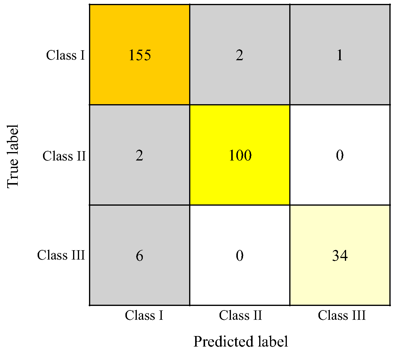 | Class III | 0.97 | 0.85 | 0.91 | 40 |