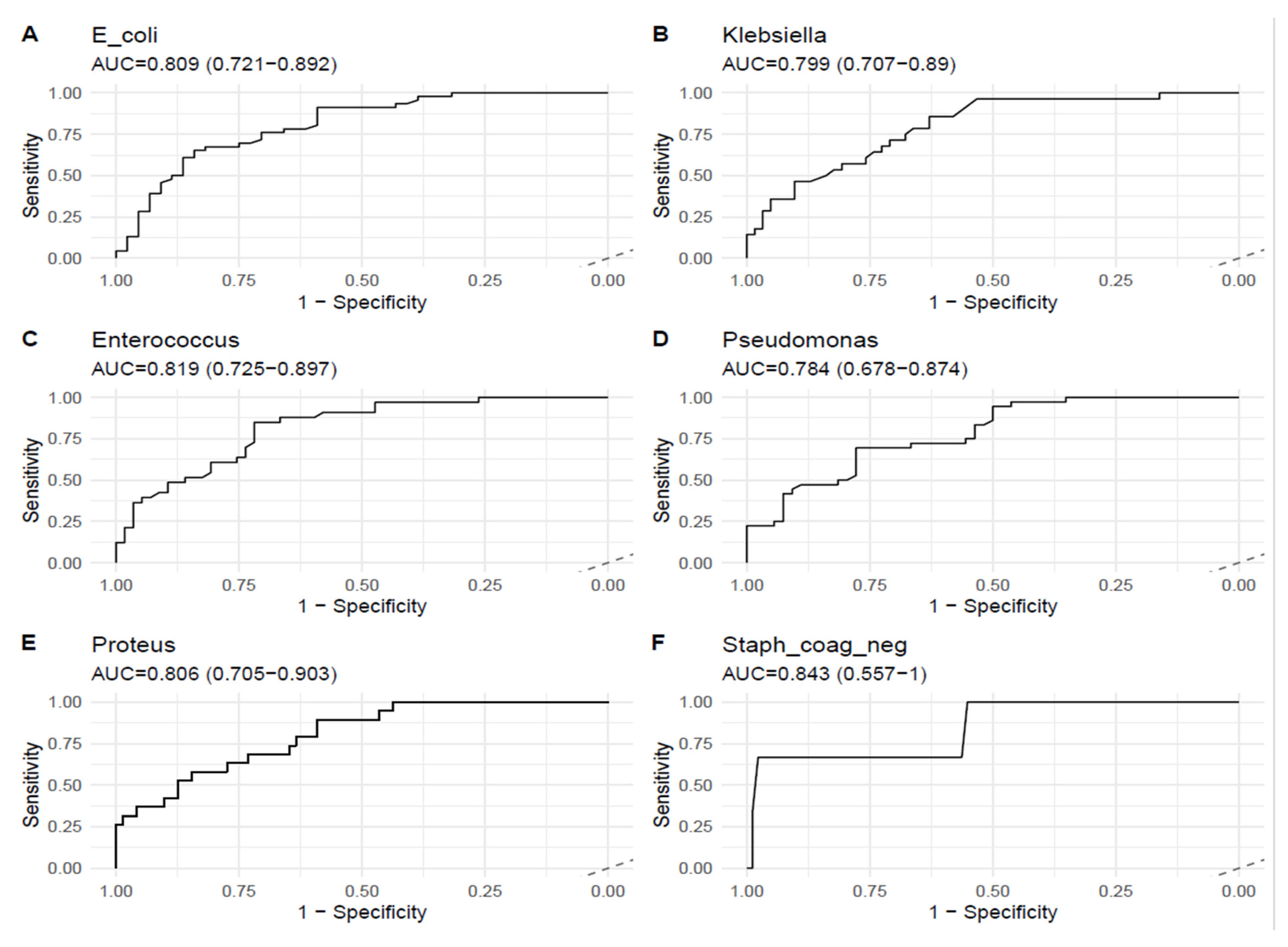 7] by providing the first species-specific, mixed-effects calibration and ROC analysis linking ΔCt to quantitative CFU across multiple uropathogens, validated through sensitivity analyses. Our results support the development of assay- and species-specific ΔCt cutpoints that approximate key clinical thresholds (10