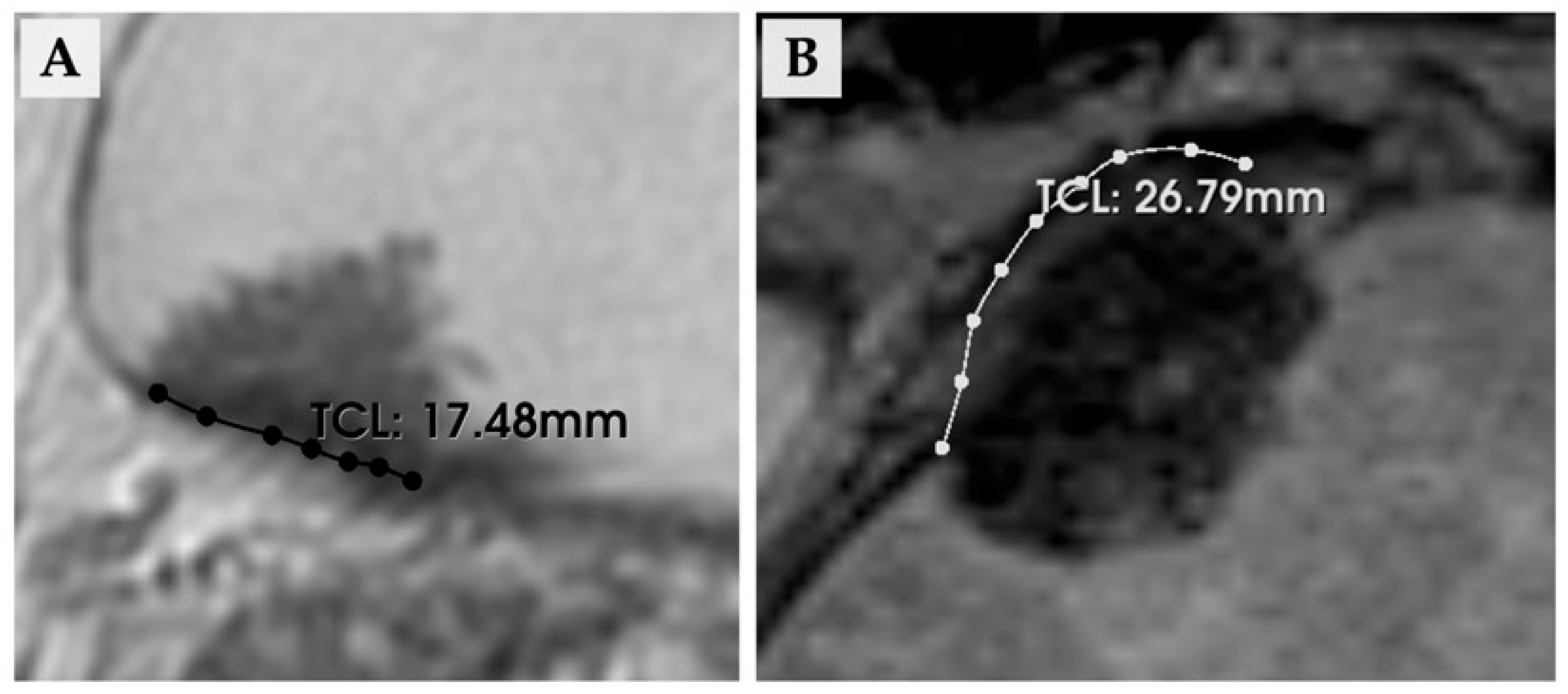 | TCL ≥ 40 mm | 8.36 (2.72–25.66) | <0.001 | 1.26 (0.24–6.76) | 0.786 |