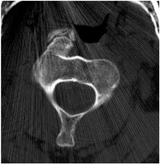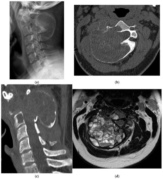 - Marshman, L.A.G.; David, K.M.; O’Donovan, D.G.; Chawda, S.J. Fibrous dysplasia of the cervical spine presenting as a pathological fracture. Br. J. Neurosurg. 2004, 18, 527–533. [Google Scholar] [CrossRef]
