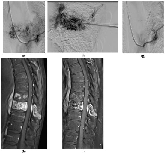 - Cloran, F.; Pukenas, B.; Loevner, L.; Aquino, C.; Schuster, J.; Mohan, S. Aggressive spinal haemangiomas: Imaging correlates to clinical presentation with analysis of treatment algorithm and clinical outcomes. Br. J. Radiol. 2015, 88, 20140771. [Google Scholar] [CrossRef]