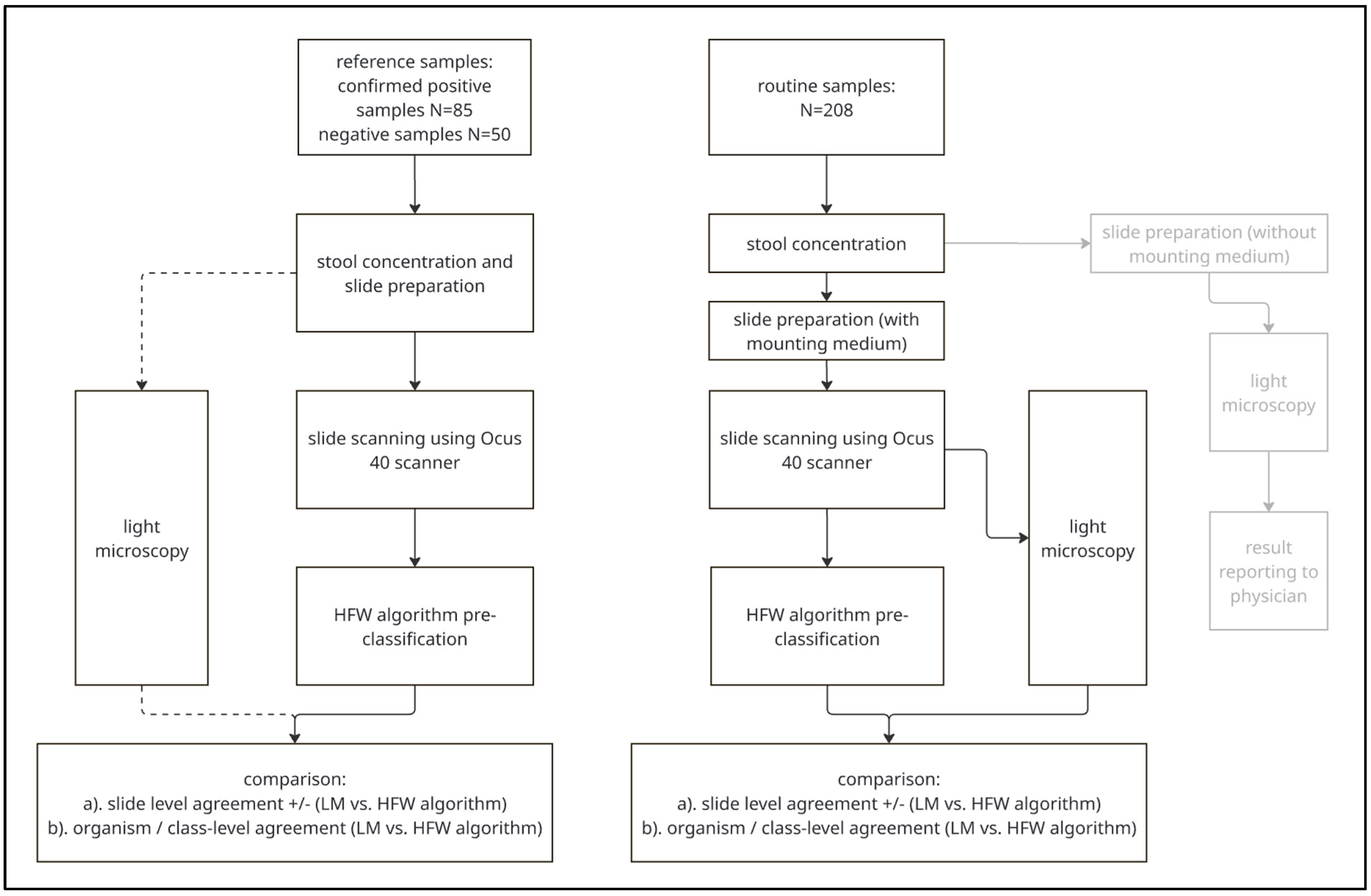 | Overall agreement (HFW algorithm version 1.0) Overall agreement (HFW algorithm v. 1.0.1) | - | 80/85 (94.1%) 83/85 (97.6%) | 71/85 (83.5%) 74/85 (87.0%) |