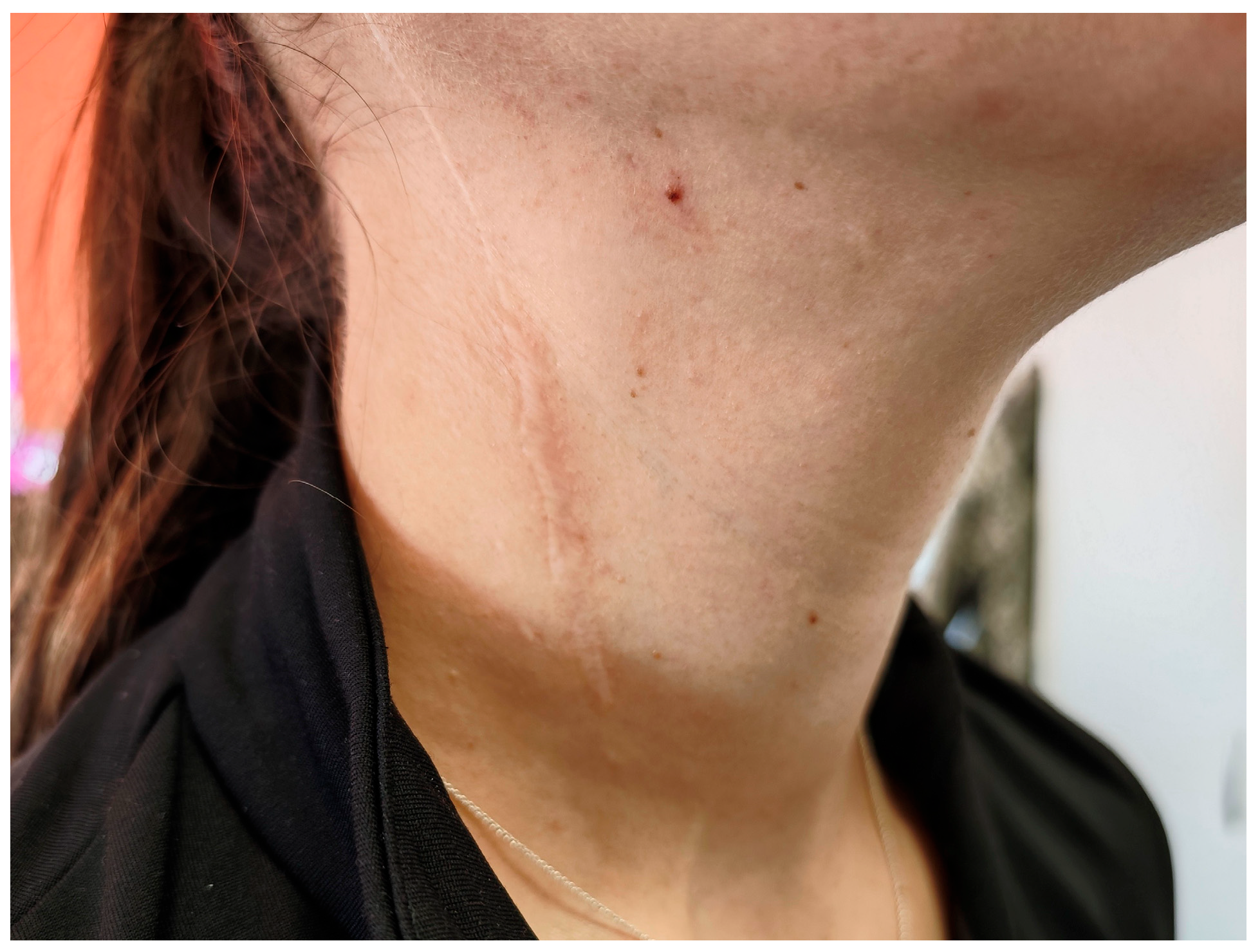 - Post-surgical cervical scarring and asymmetry with denervation and surgically absent SCM muscle fibers;