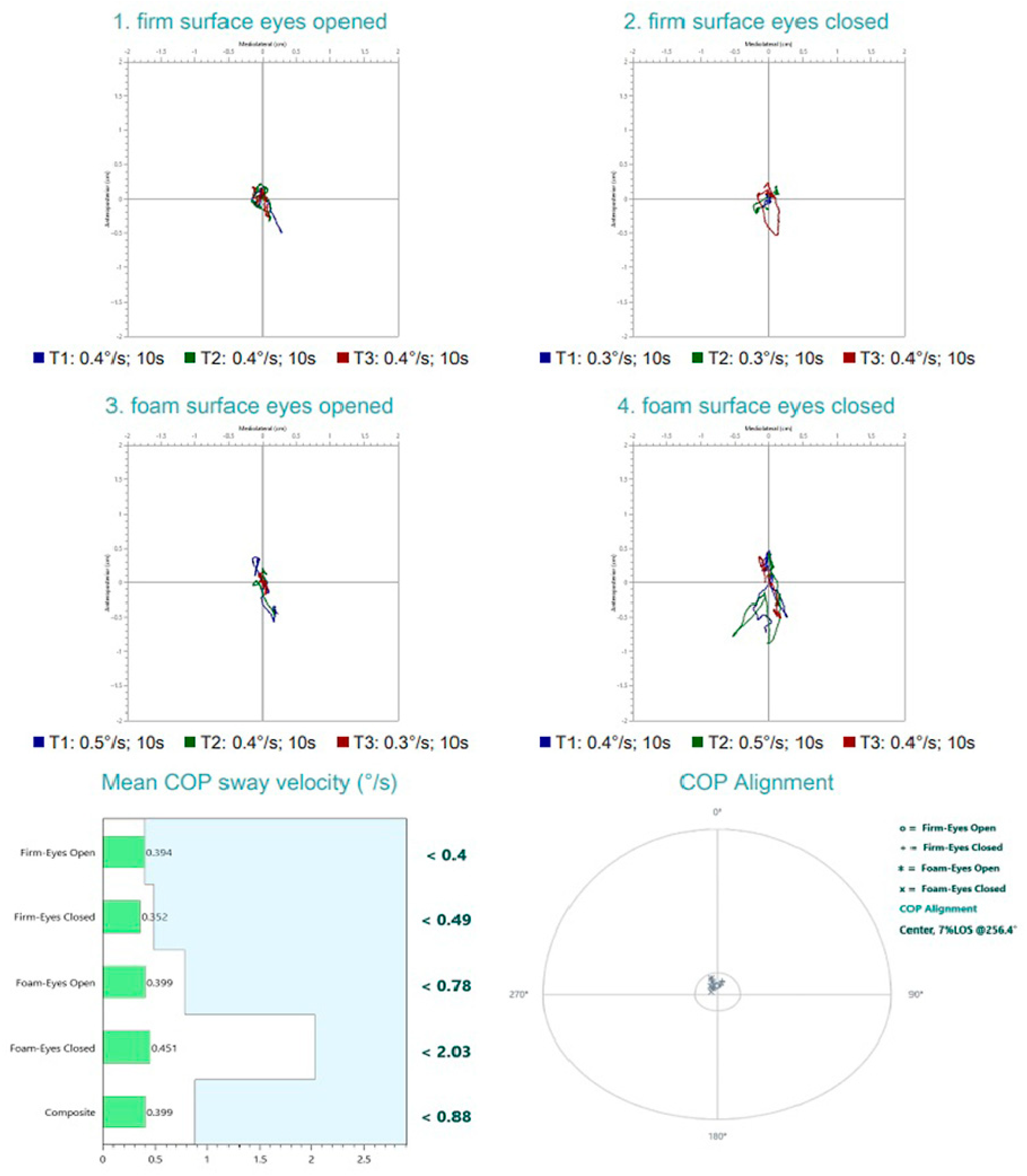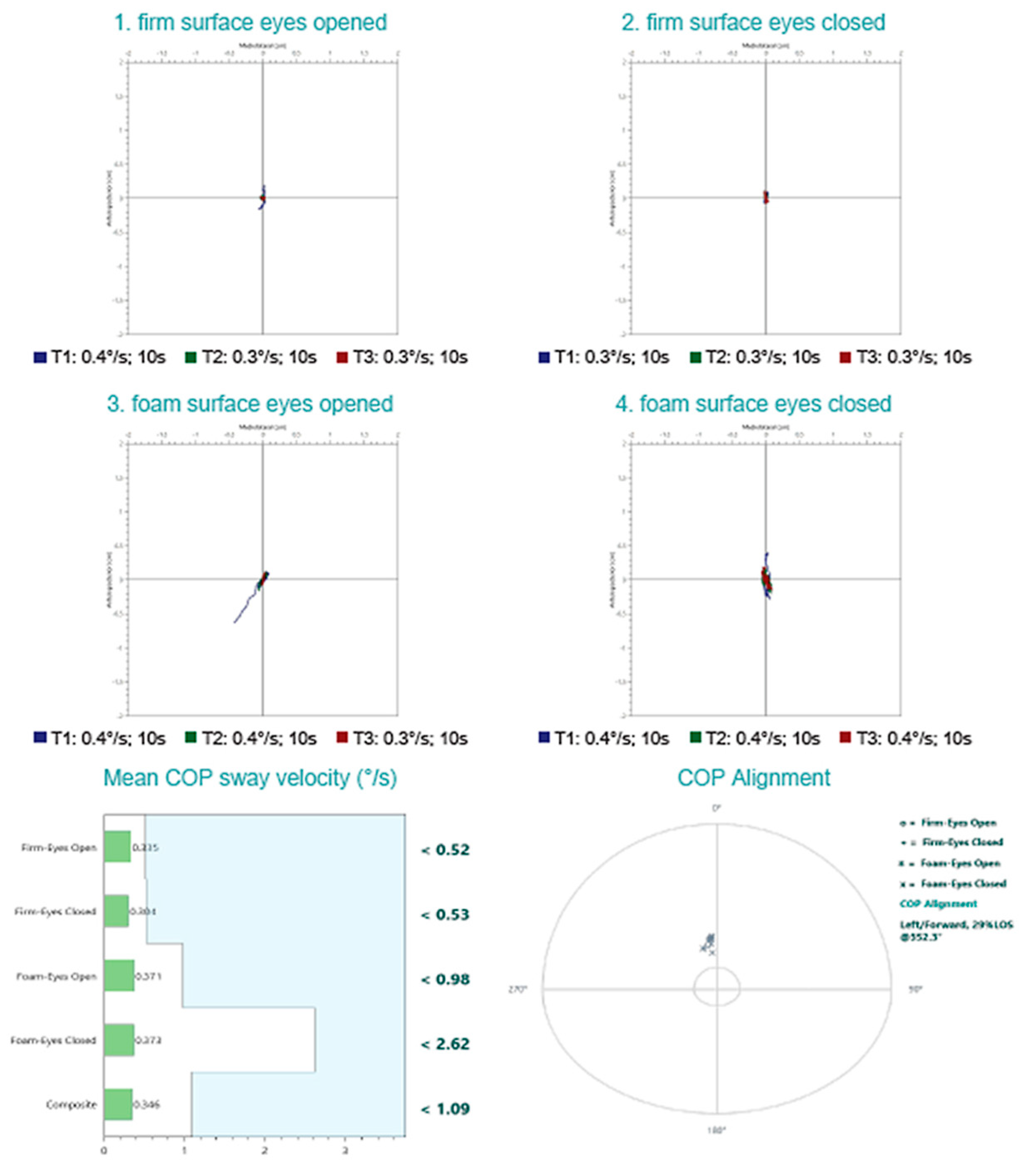 - Firm surface, eyes open—All sensory inputs available; baseline condition;