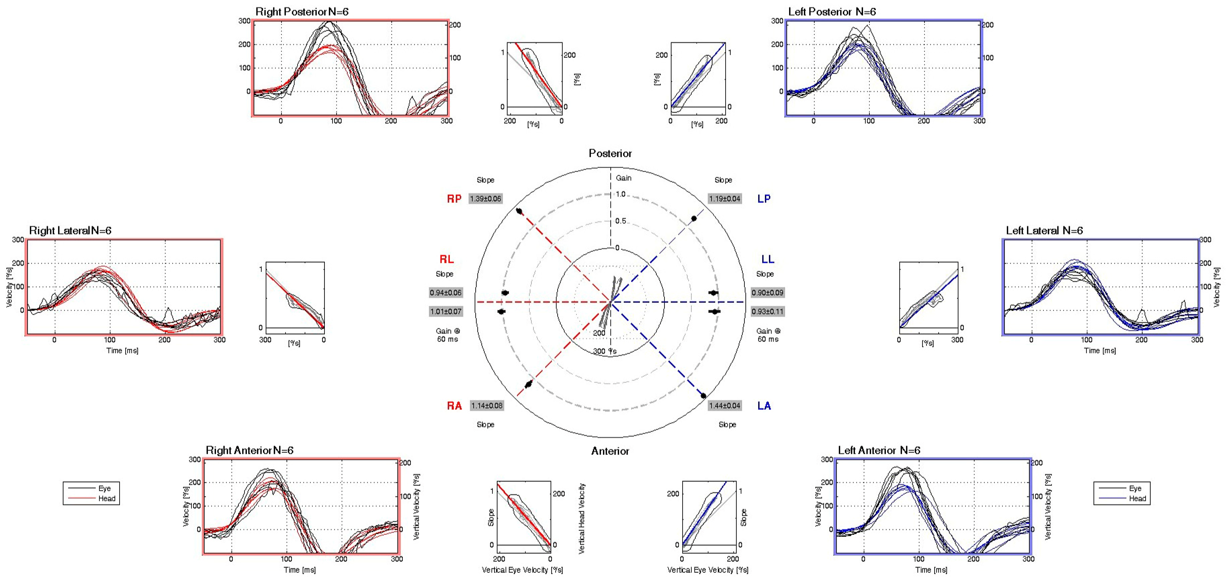 - Hougaard, D.D.; Abrahamsen, E.R. Functional Testing of All Six Semicircular Canals with Video Head Impulse Test Systems. J. Vis. Exp. 2019, 146, e59012. [Google Scholar] [CrossRef]