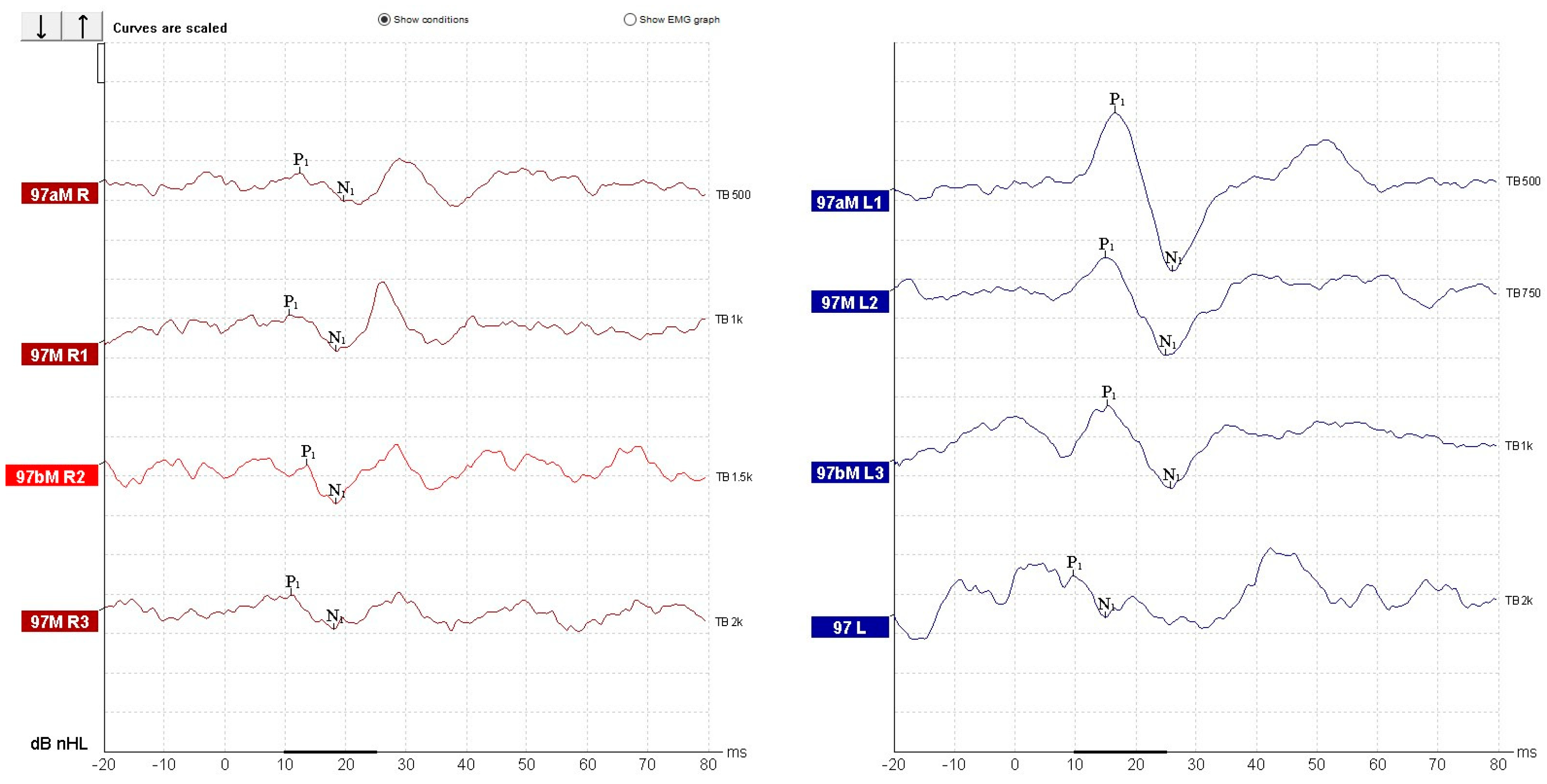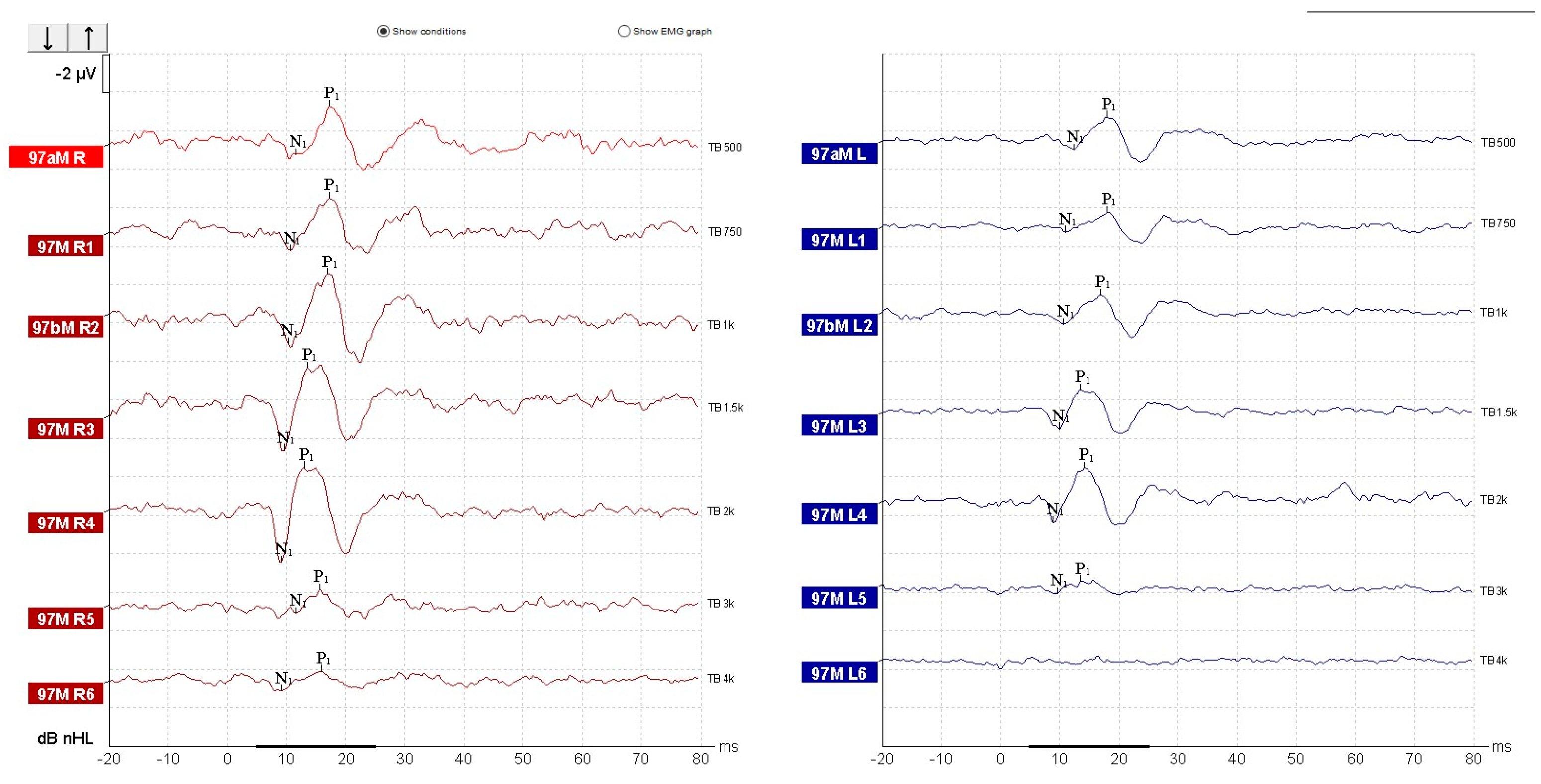 | Intensity | 97 dB nHL and descend | 97 dB nHL and descend |
