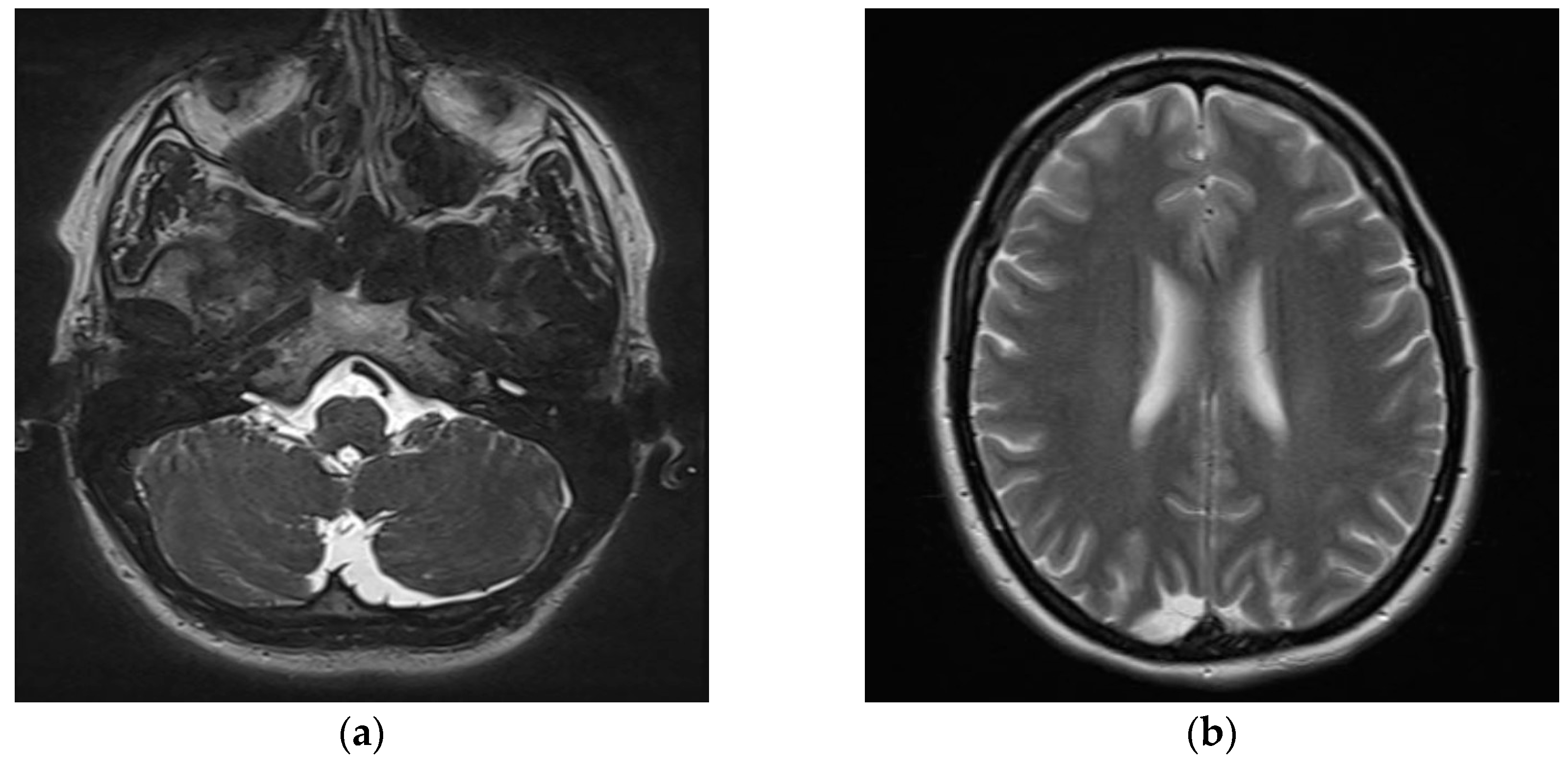 - Wangaryattawanich, P.; Rutman, A.; Petcharunpaisan, S.; Mossa-Basha, M. Incidental Findings on Brain Magnetic Resonance Imaging (MRI) in Adults: A Review of Imaging Spectrum, Clinical Significance, and Management. Br. J. Radiol. 2023, 96, 20220108. [Google Scholar] [CrossRef]