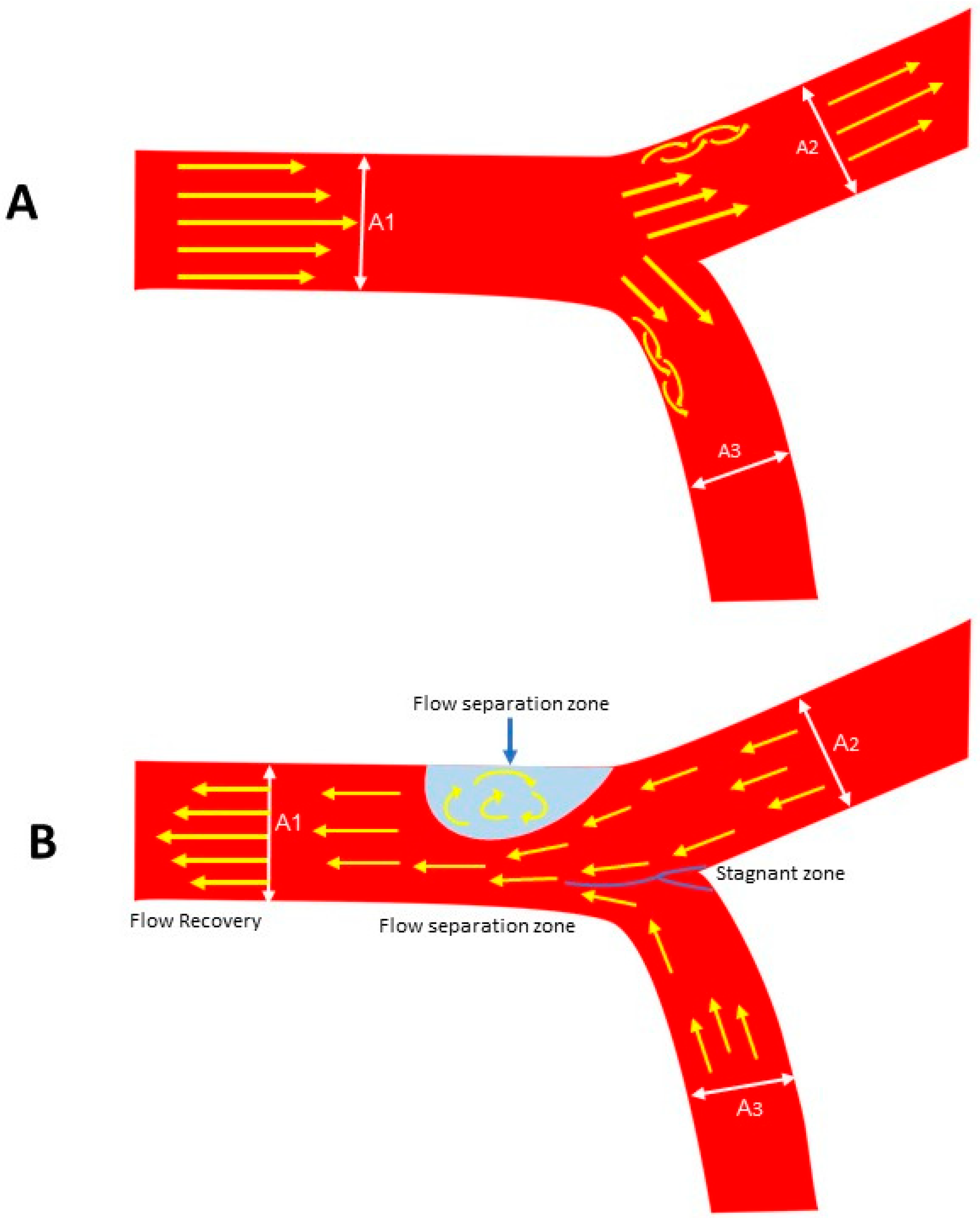 | 3. | Recirculating flow at an exit curve of a bifurcation |