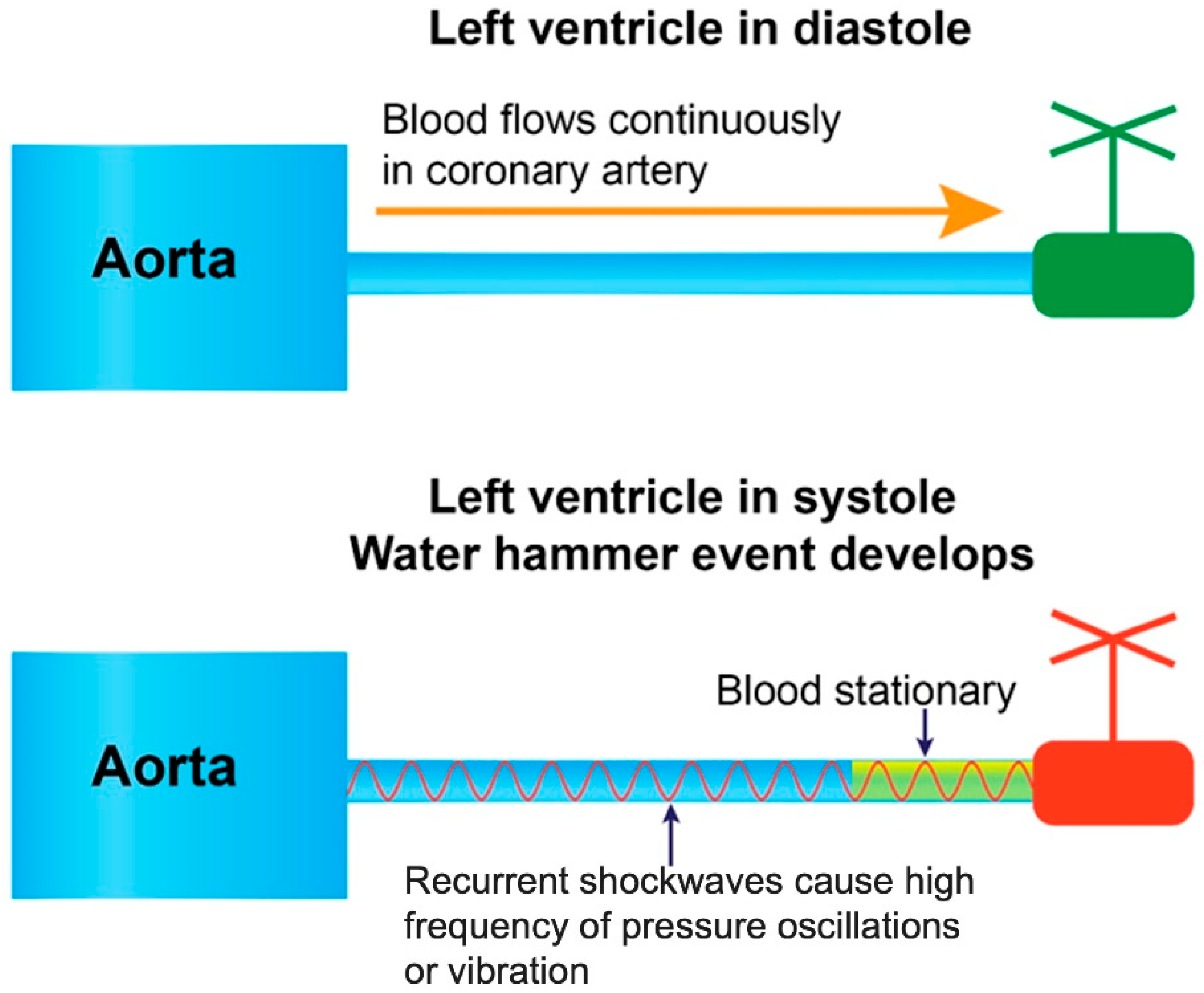 - Ngo, K.D.; Nguyen, T.; Pham, H.D.; Tran, H.; Ha, D.Q.; Dinh, T.S.; Mihas, I.; Kodenchery, M.; Gibson, C.M.; Nguyen, H.Q.; et al. Water Hammer Phenomenon in Coronary Arteries: Scientific Basis for Diagnostic and Predictive Modeling with Acoustic Action Mapping. Diagnostics 2025, 15, 553. [Google Scholar] [CrossRef] [PubMed]