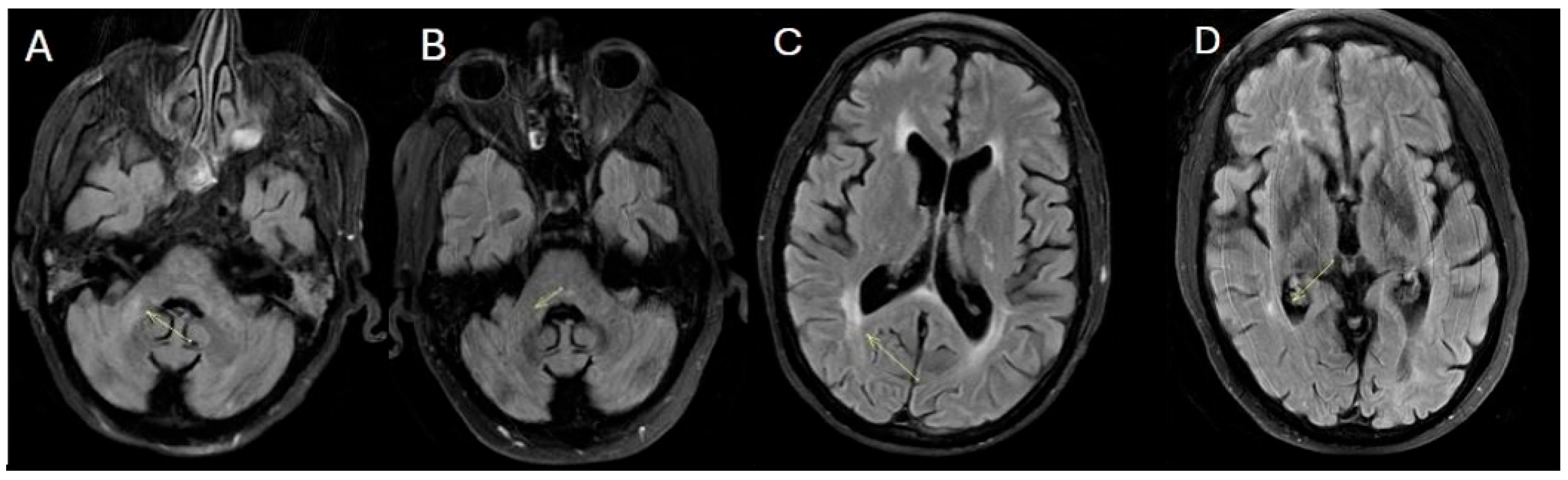The clinical case involves a 46-year-old male patient with no significant comorbidities, born to first-cousin parents and with a family history notable for hematological disease, as his father had died of acute myeloid leukemia. In July 2021, three weeks after receiving the second dose of the SARS-CoV-2 vaccine (Pfizer Comirnaty BNT162b2) on 28 June, he developed progressive balance impairment with gait ataxia, leading to unsteadiness while walking and frequent falls. By September 2021, he reported transient episodes of diplopia, which subsequently became persistent. Neurological examination at that time revealed truncal ataxia, impaired tandem walking, mild limb incoordination, and a mild right sixth cranial nerve (abducens) deficit.