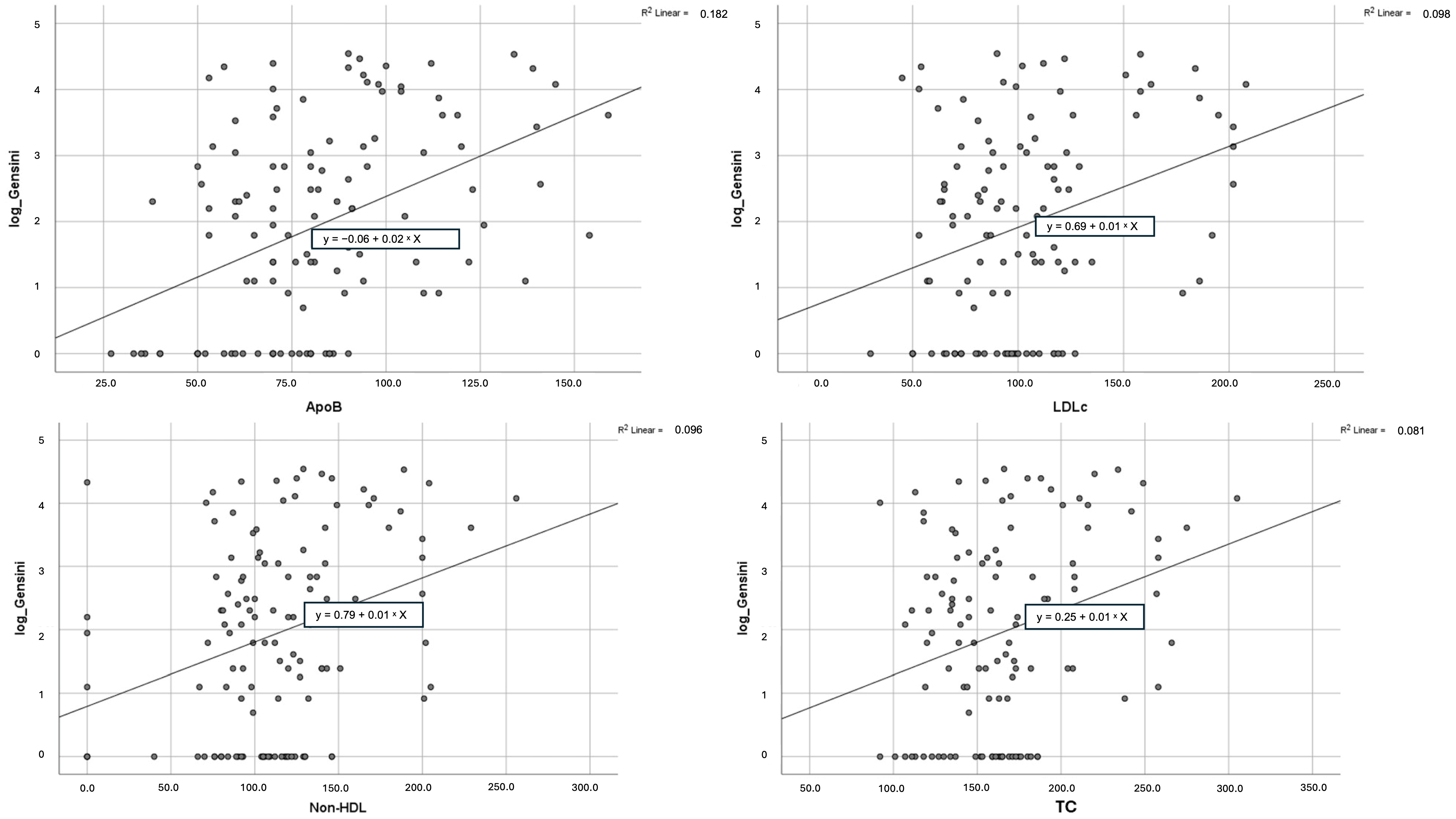 | Gensini Score | LDL-C | HDL-C | Non-HDL-C | LDL/ApoB | ||
